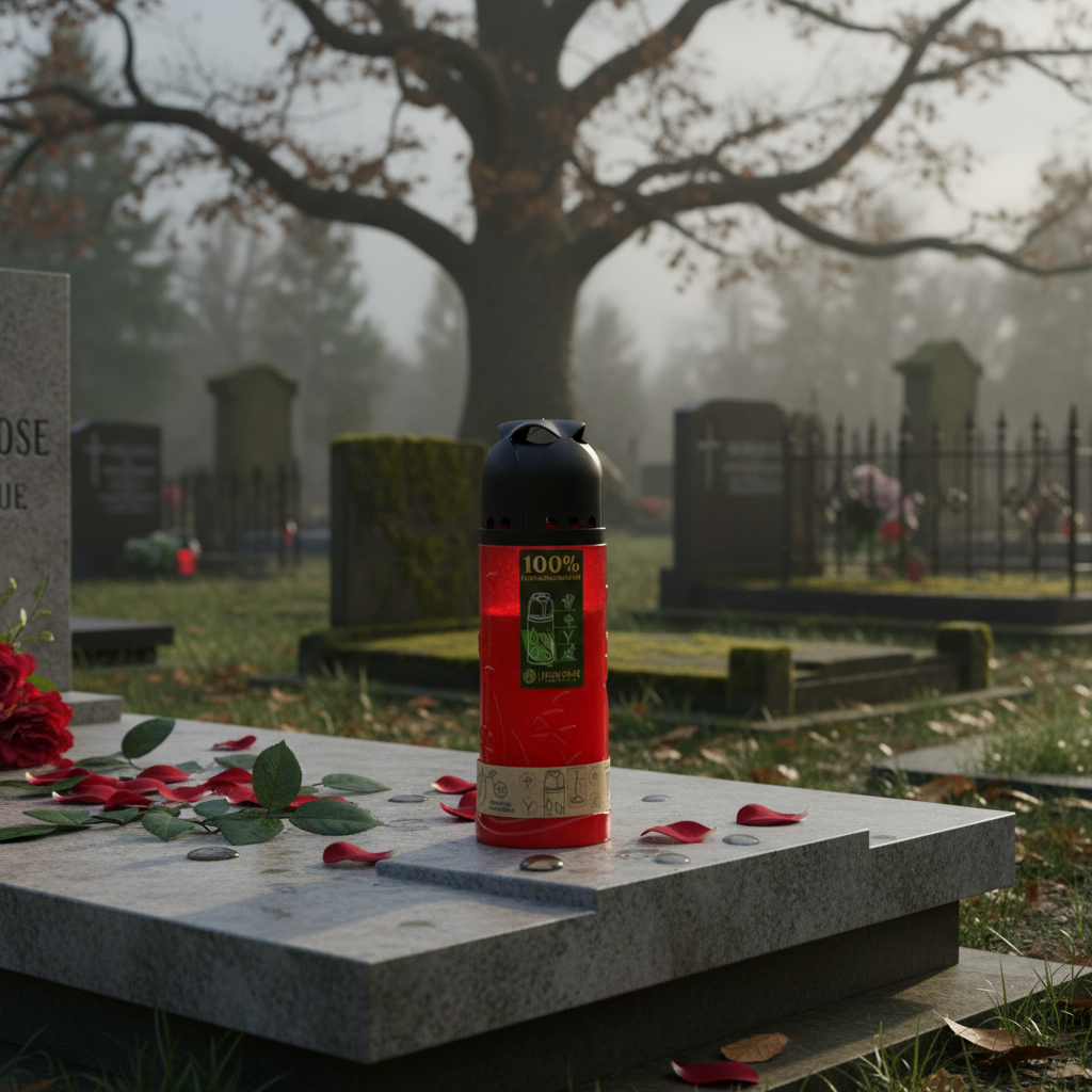 Hrobová svíčka v červené barvě je důstojným způsobem, jak připomenout své blízké. Teplé světlo, které vyzařuje ticho a oddanost a dává zvláštní čest místu posledního odpočinku. Zažijte rozjímání s touto vysoce kvalitní pamětní svíčkou, která kombinuje tradici s udržitelnou odpovědností.