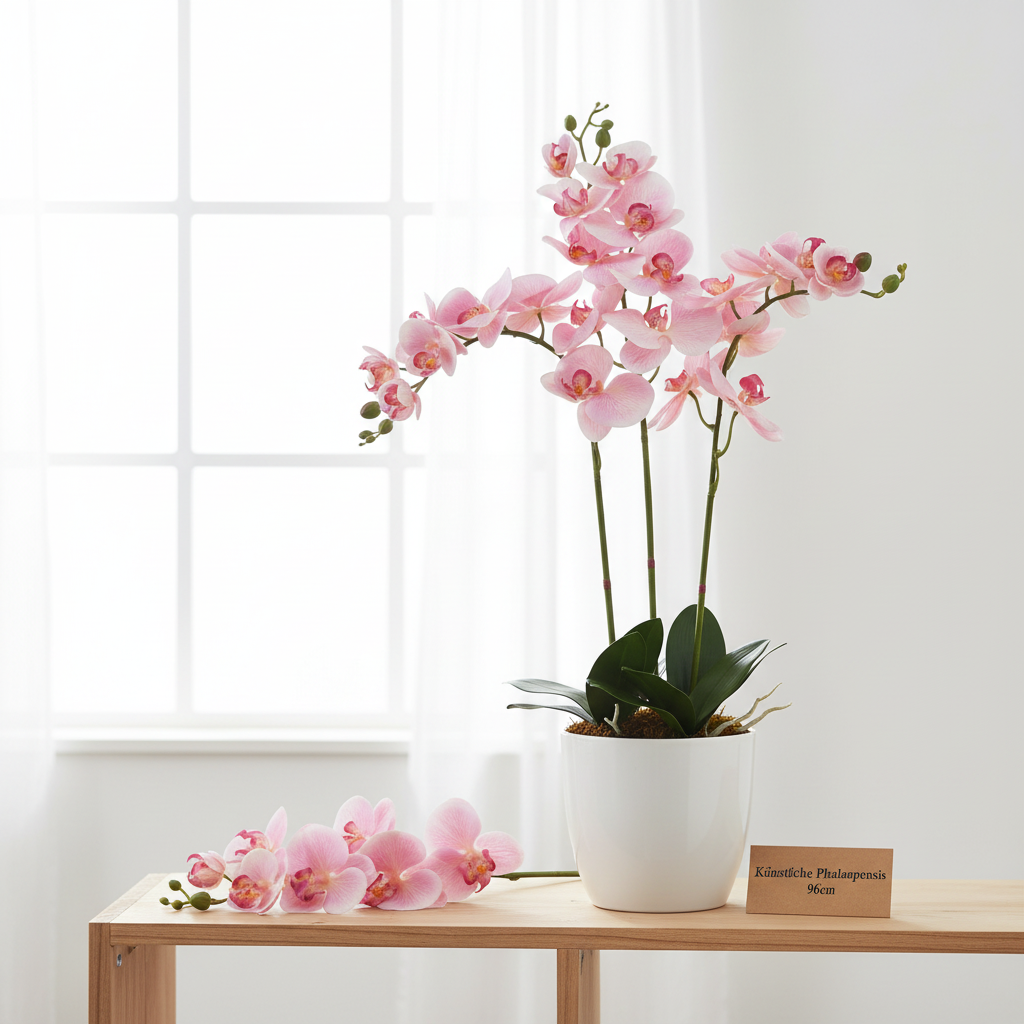 Pro svou nádheru květů je tato orchidej z rodu Phalaenopsis prvotřídní umělou květinou. Vytvářejte trvalé dekorace i v místnostech bez světla s velkou umělou květinou!