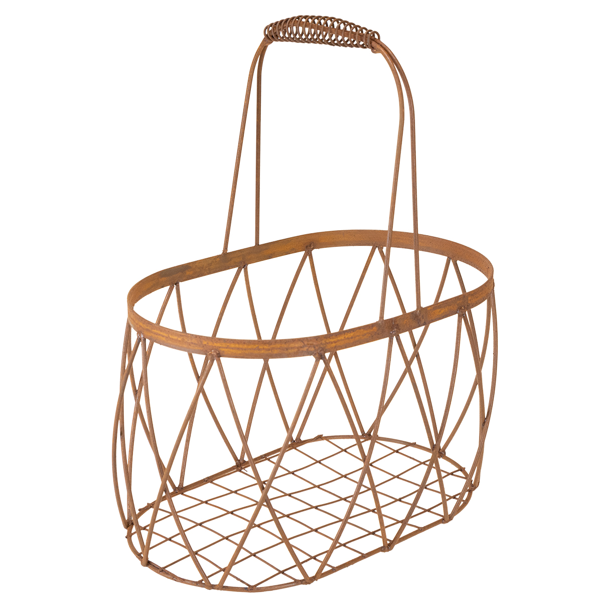 Oválný drátěný koš s rukojetí, zahradní dekorace, rezavá úprava, 30/25 cm, sada 2 kusů