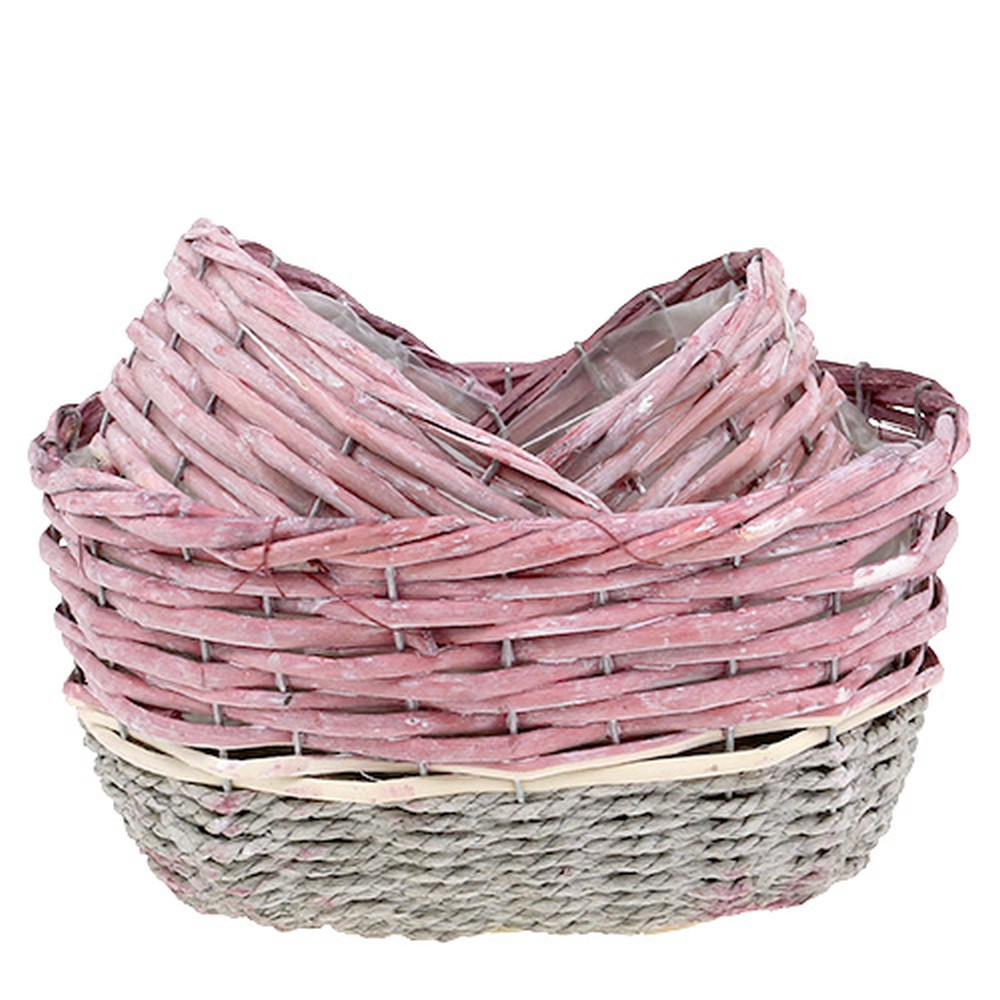 Oválný košík, sada 3 ks růžové, přírodní