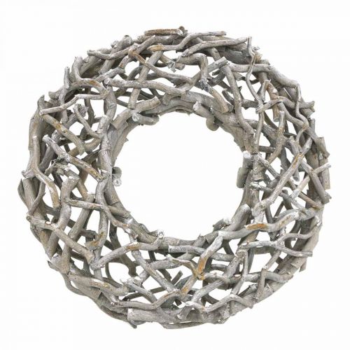Ozdobný věnec z větví jilmu, bílo-šedý praný Ø40cm