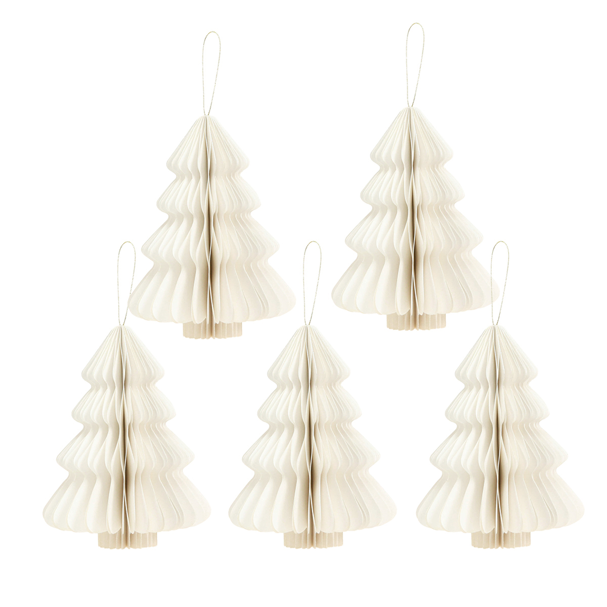 Dodejte svému domovu sváteční záři s našimi nádhernými papírovými vánočními ozdobami. Vánoční stromek v bílé a stříbrné barvě s praktickým průměrem kolem 20 cm přináší moderní eleganci do každé místnosti. Tyto pětidílné dekorace jsou ideální jako poutač do obývacího pokoje a kanceláře a lze je snadno integrovat do různých konceptů bydlení.