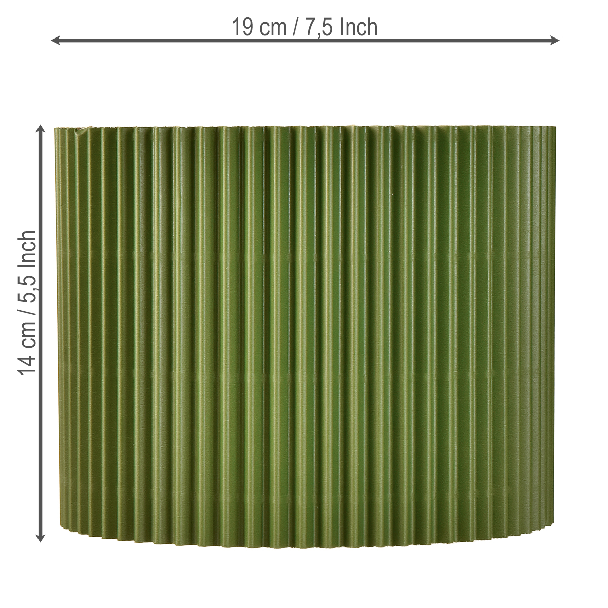 Tento elegantní, tmavě zelený papírový květináč dodá dekorativní nádech každé místnosti. S průměrem přibližně 19 cm a výškou přibližně 14 cm je tento květináč ideální pro středně velké rostlinné aranžmá. Moderní design s žebrovaným vnějším povrchem mu dodává zajímavou texturu. Díky tomu je květináč ideální do obývacích pokojů, kanceláří nebo jako kreativní dárek. Upozorňujeme, že před použitím s živými rostlinami by měl být květináč vyložen fólií, aby byl chráněn před vlhkostí. Květináč je ideální pro dekorativní aranžmá rostlin doma nebo do květinových dekorací a výloh obchodů.