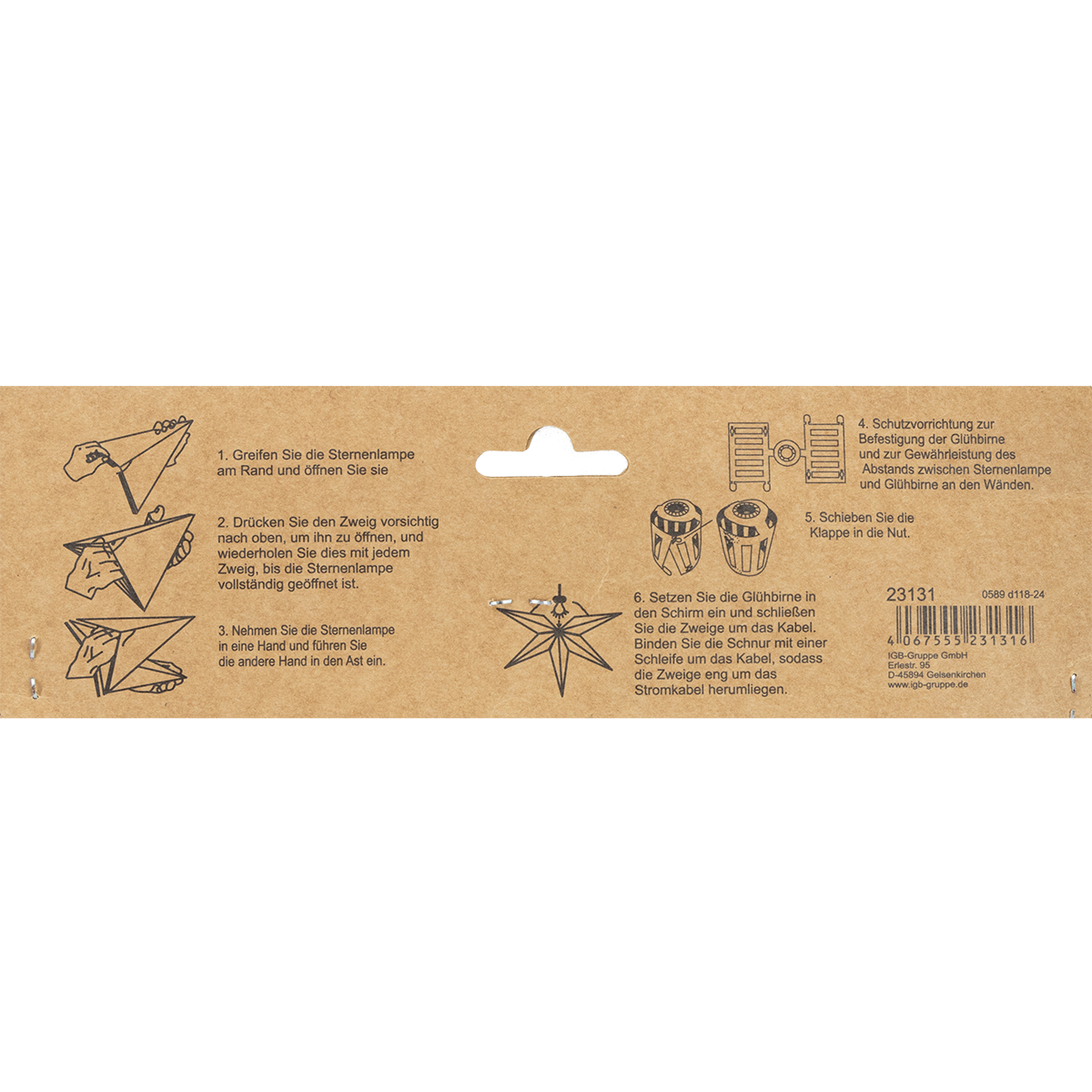 Tato papírová hvězda nejenže upoutá pozornost, ale zaujme i svým vysoce kvalitním zpracováním. Krémově zbarvený papír vyzařuje příjemnou jednoduchost, která je zároveň elegantní. S průměrem 60 cm je hvězda ideální pro zdobení větších oken, ale i celých místností – ať už jako dekorace do obývacího pokoje nad stůl, jako dekorace okna s atmosférickým osvětlením nebo jako zvýraznění ve vstupních prostorách. Integrovaný bavlněný závěs se zarážkou usnadňuje zavěšení a zajišťuje bezpečné uchycení.