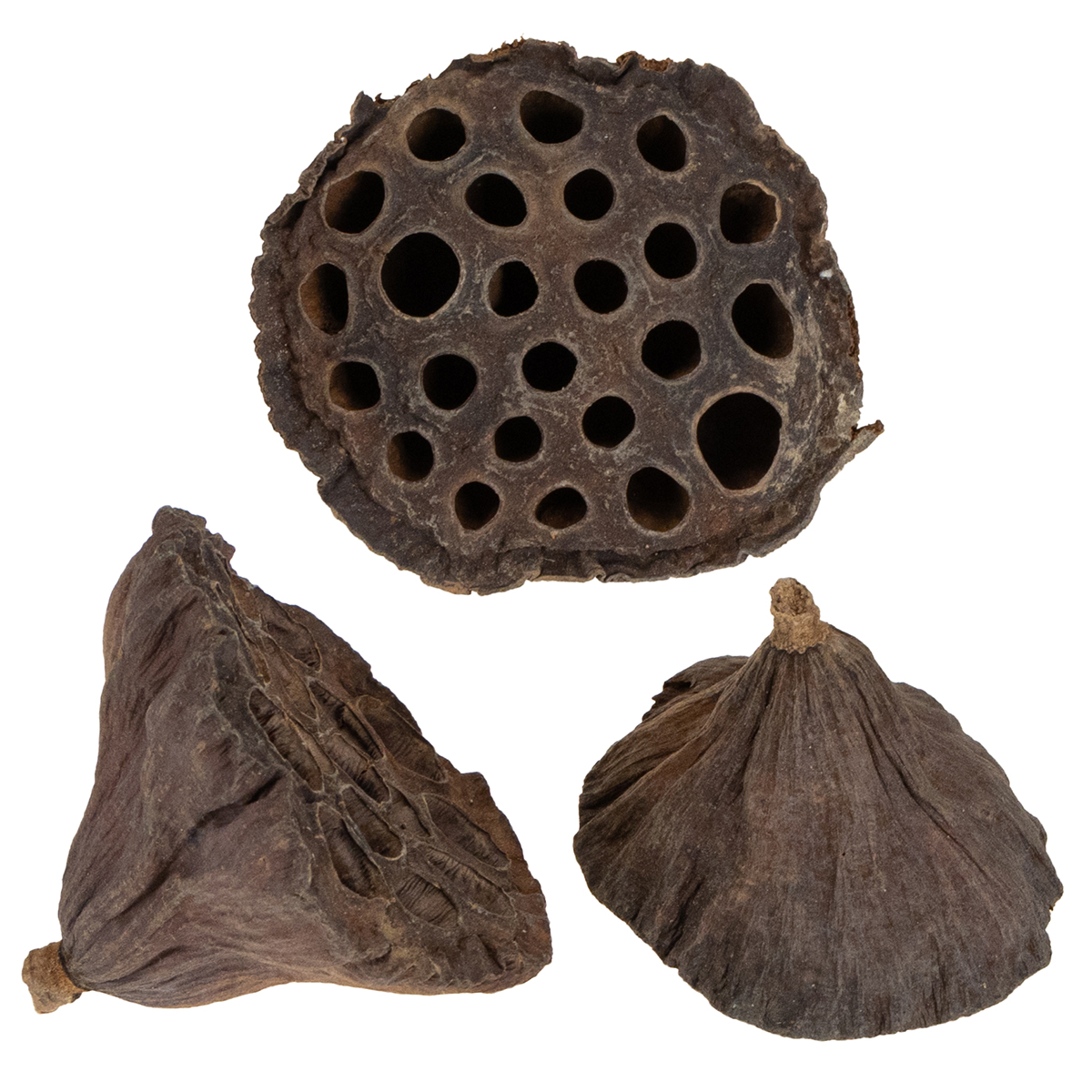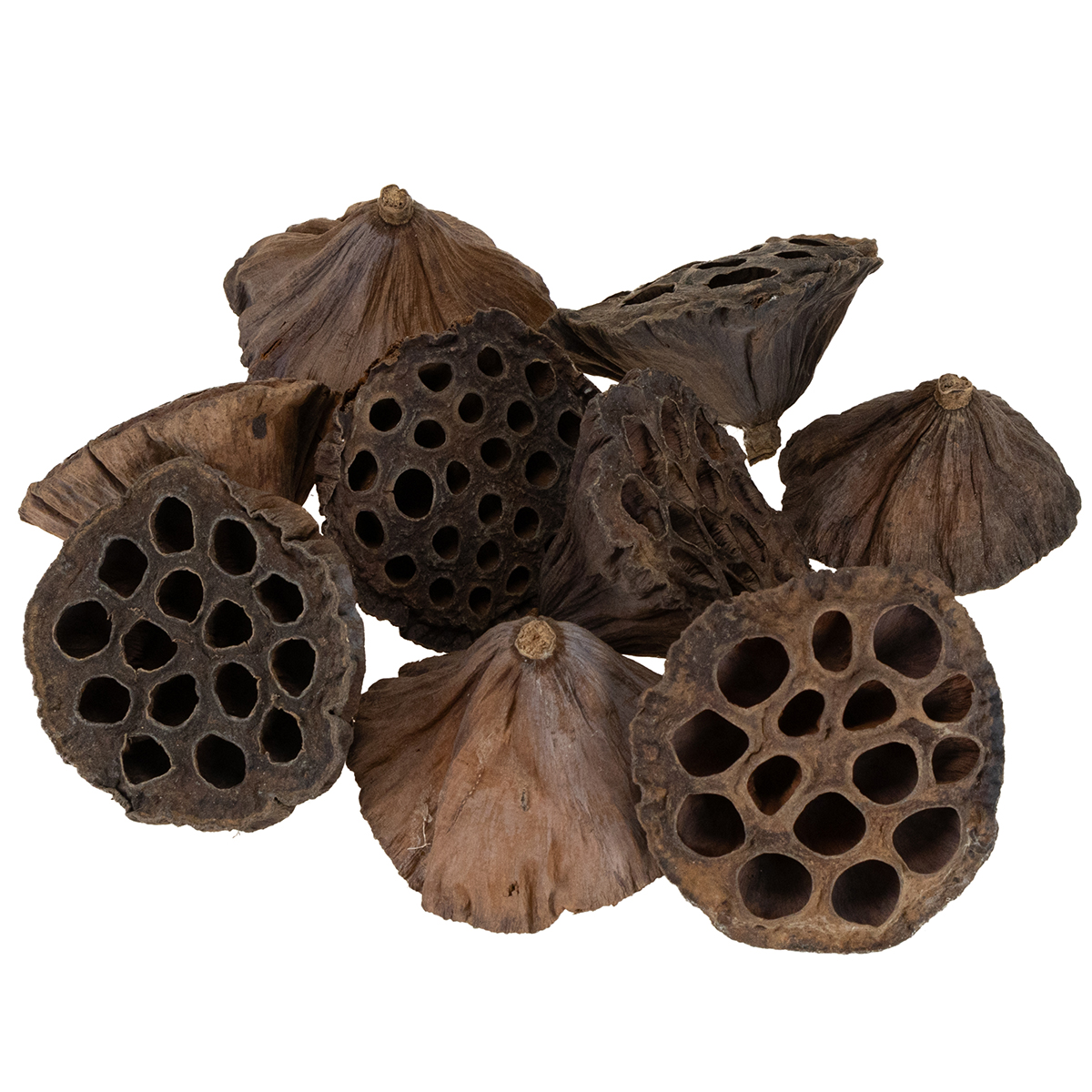 Tmavě hnědé sušené plody ladí zejména s nebarvenými nebo bělenými exotickými druhy, jako jsou kokosové skořápky, rákosové klasy, Bell Cup a proteiny, ale i s místními přírodninami, jako jsou šišky, špičaté karty a houby. Takové výrobky můžete báječně naaranžovat na půlkruh ze zásuvného materiálu a přidat stylové figurky, symboly a jemnou smuteční stuhu pro kulatý celkový obraz. Mimo to se lotosové kapsle velmi dobře hodí i k přírodní a spíše rustikální vánoční dekoraci a lze je začlenit mimo jiné do adventního věnce nebo aranžmá na vánoční stůl.