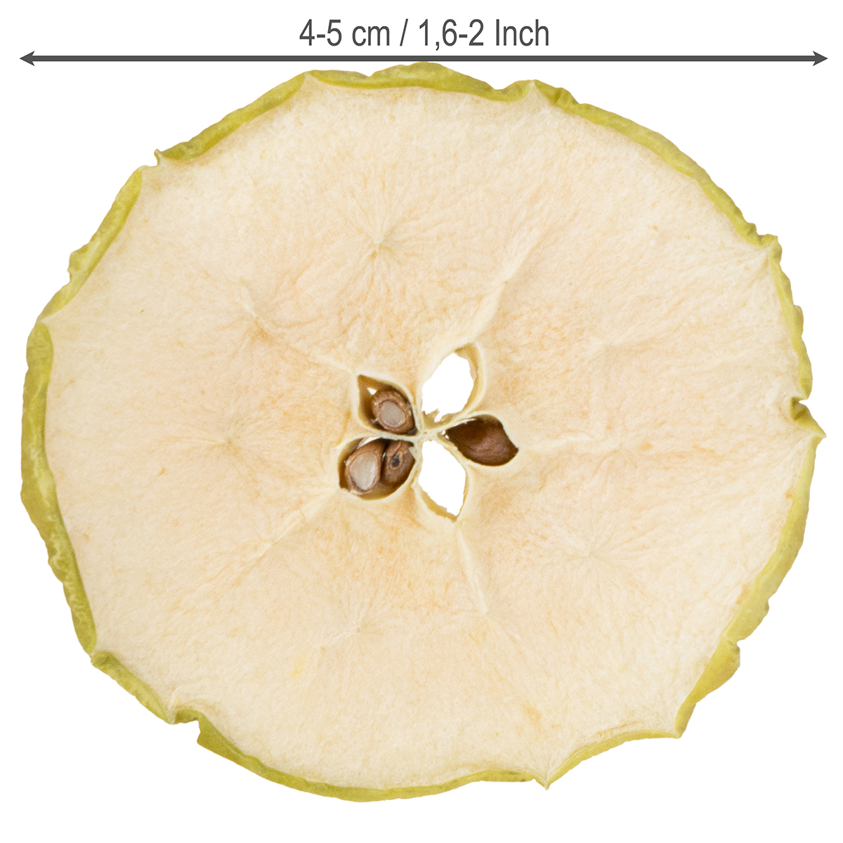 V každém 500 gramovém balení je několik plátků červeného jablka na ozdobení, z nichž všechny mají přirozeně mírně odlišné velikosti. Kotouče mají průměr kolem 4 až 5 centimetrů a jsou mimořádným efektem jako dekorace na běhounu u jídelního stolu, která nemá konkurenci.