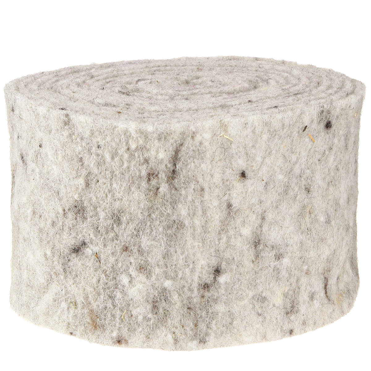 Plstěná páska v šedé barvě je navinutá do velké role a má délku asi 5 metrů. Šířka je asi 15 centimetrů.