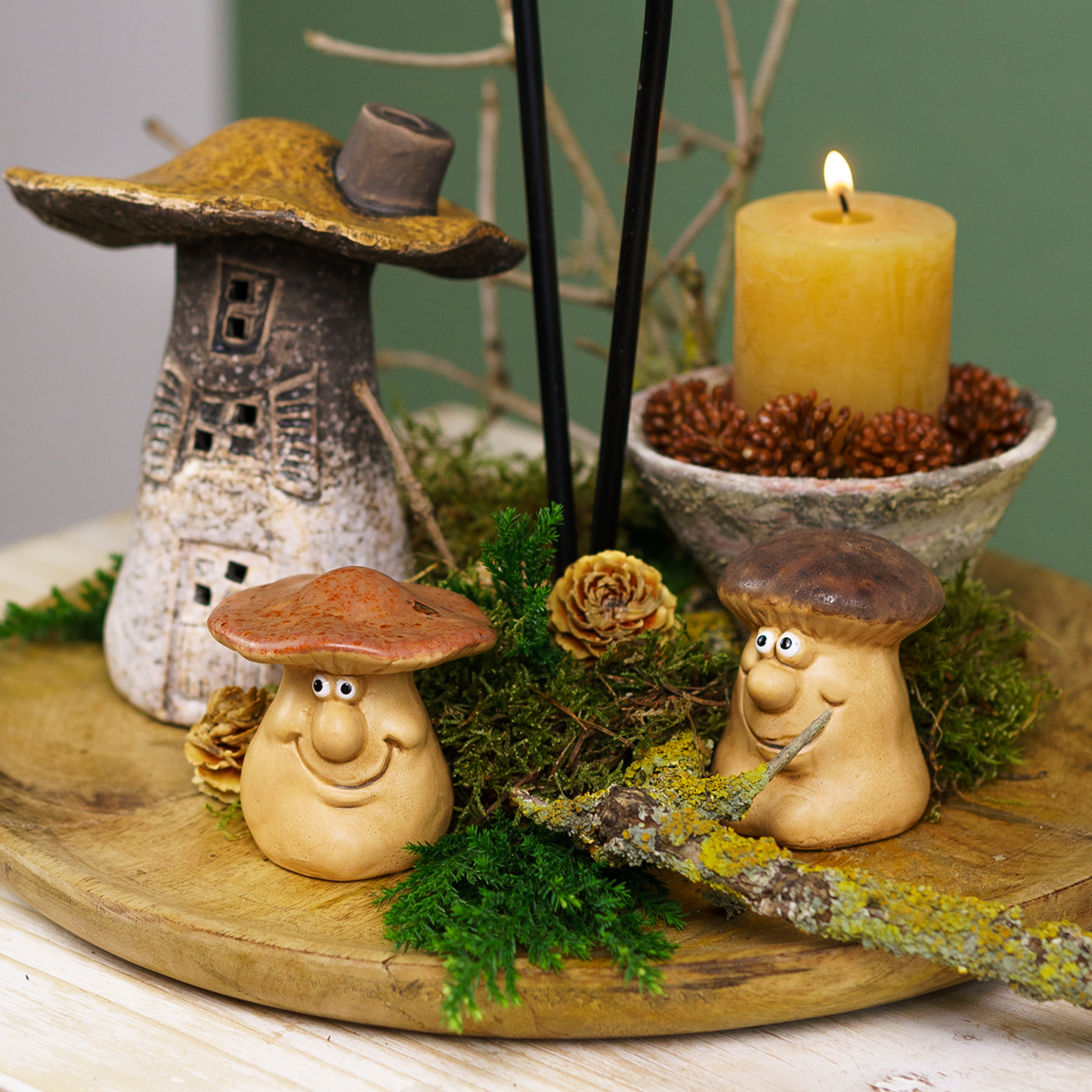 Naše sada podzimních dekorací v sobě spojuje vše, co potřebujete pro atmosférickou podzimní výzdobu. Tento roztomilý ježek z vinné révy bude poutavým prvkem v rustikálních a útulných místnostech – ideální pro venkovský styl. Doplňují ho miniaturní houby v teplé hnědé, béžové a rezavě červené barvě, hravé květinové štiky, praktický jutový provázek, realistické červené podzimní listí jako umělé rostliny a rezavě zbarvená uvítací cedule.
