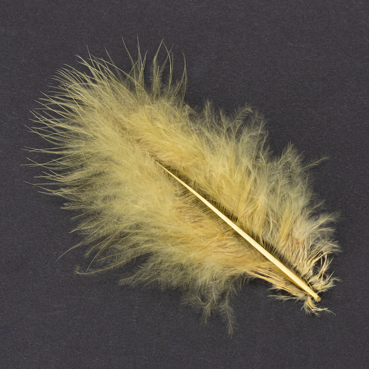 - Pravé, nadýchané ptačí peří ve světle žluté barvě