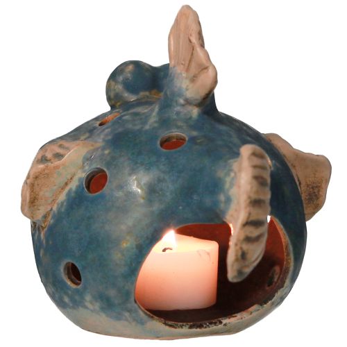 Pufrovací rybka na čajovou svíčku keramická ozdobná ryba modrá 15cm 2ks