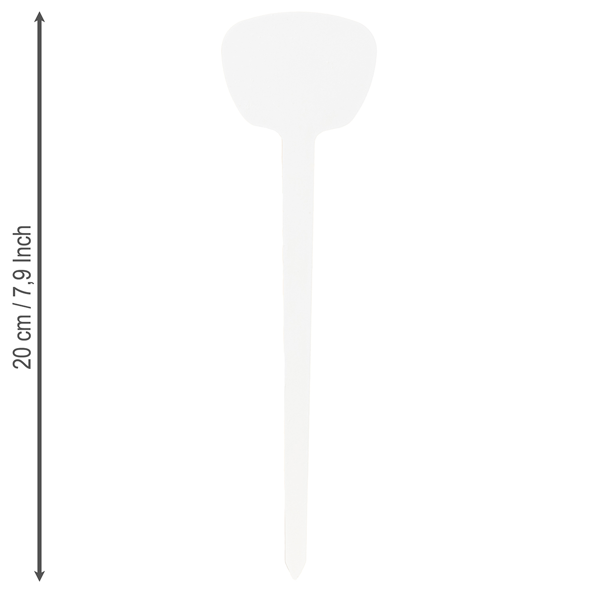 Zátky rostlin pro etiketování jsou vyrobeny z jemného, ale rozměrově stálého plastu. Květinové visačky jsou voděodolné a opakovaně použitelné. Díky nabroušené tyči snadno zatlačíte štítky rostlin do zeminy nebo do záhonu.