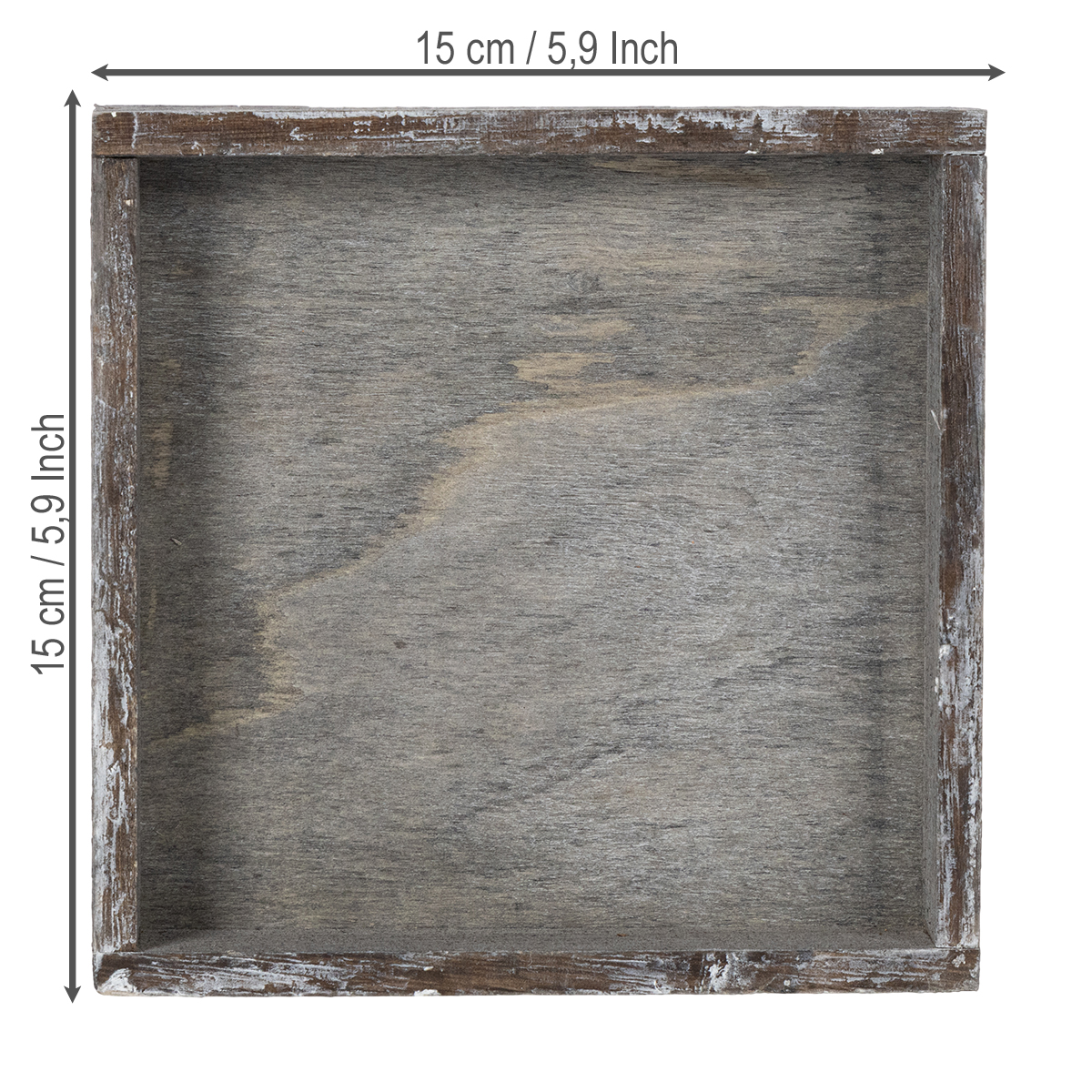 Tento čtvercový dřevěný podnos zaujme svou všestranností a přirozeným vzhledem. Ať už ho použijete pro každodenní použití nebo pro zvláštní příležitosti, tento dekorativní podnos vám pomůže stylově vystavit vaše dekorace. Jeho kompaktní rozměry – 15 cm na délku, 15 cm na šířku a 3 cm na výšku – umožňují perfektní umístění na menších stolech nebo policích. Jeho rustikální šedá dřevěná povrchová úprava je navíc jednoduše okouzlující a harmonicky se hodí k různým stylům, jako je vintage, country, boho nebo skandinávský.