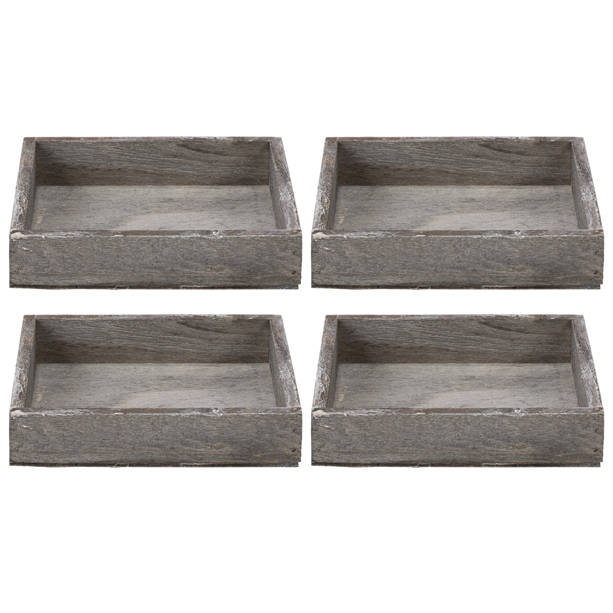 Hledáte elegantní způsob, jak dodat vašemu stolu nebo dekoraci speciální nádech? Něco jednoduchého, ale zároveň poutavého? Náš rustikální dřevěný dekorativní podnos je přesně to, co potřebujete! Tento stylový doplněk kombinuje okouzlující vintage vzhled s funkčností – perfektní kombinace pro ty, kteří oceňují přirozeně krásnou dekoraci. Ať už jej použijete na jídelním stole se svíčkami, jako dekorativní podstavec pro rostlinná aranžmá nebo k uložení vašich oblíbených doplňků, jako jsou šperky, tento čtvercový podnos je neuvěřitelně všestranný. Šedý dřevěný odstín a pečlivě zpracovaná rustikální povrchová úprava dělají každý kus jedinečným. A to nejlepší? Dostanete čtyři tyto nádherné podnosy! Praktické, že?