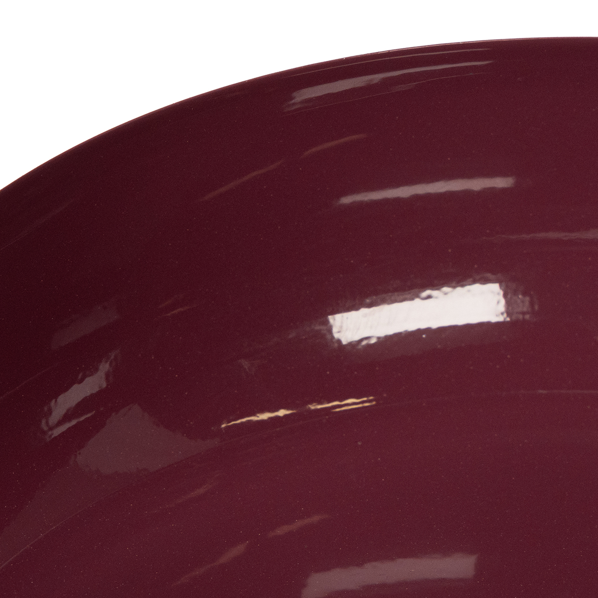 Tato sada dekorativních misek se skládá ze dvou kusů, každý o průměru 21 cm a 13 cm a výšce 6 cm. Misky jsou vyrobeny z vysoce kvalitního kovu ve stylové bordó barvě a zaujmou svým lesklým povrchem a robustní konstrukcí. Tato harmonická kombinace tvaru a barvy z nich dělá perfektní volbu pro moderní a zároveň nadčasově elegantní dekorace. Ať už misky uspořádáte jednotlivě nebo jako pár, jistě upoutají pozornost.
