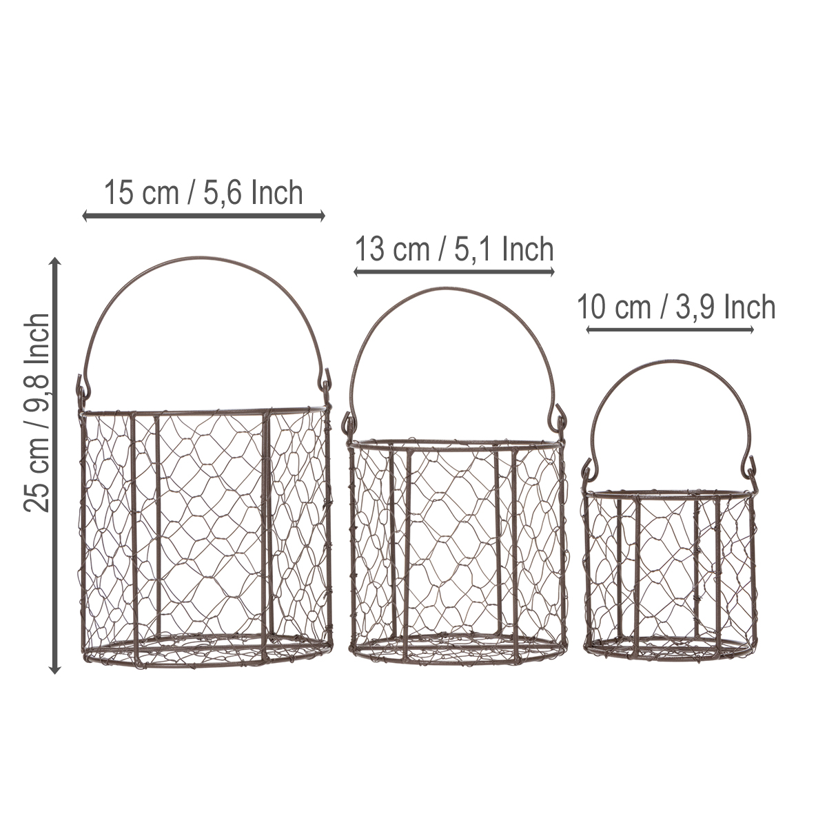 Sada drátěných košů ideální pro použití v kuchyni nebo na zahradě, 25 cm, 1 sada