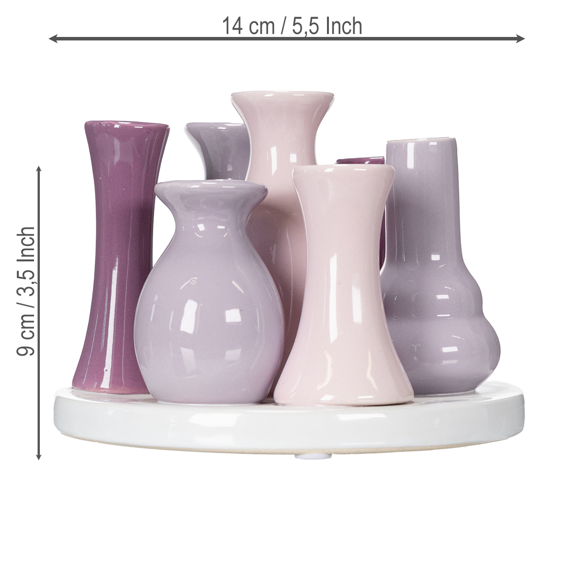 - Design: Šest integrovaných váz na stabilním keramickém talíři