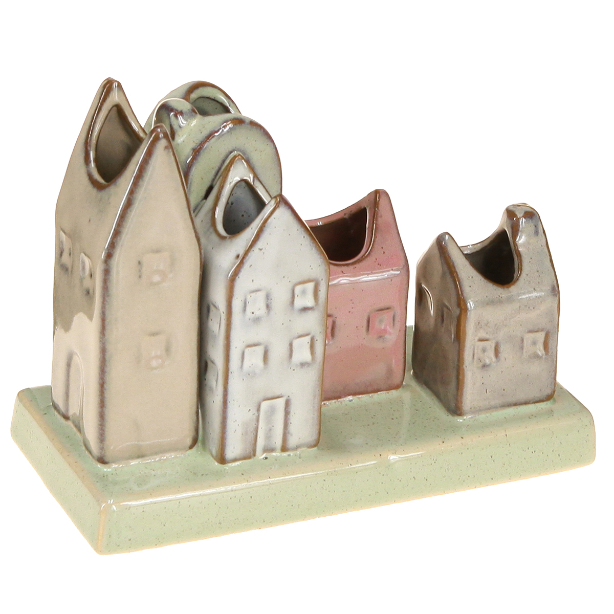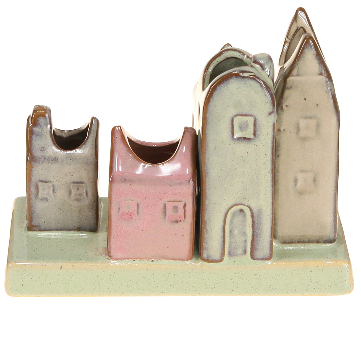 Každá z pěti malých váz ve tvaru domečku má úzkou válcovou vložku, díky čemuž jsou ideální pro jednoduché květiny, jako jsou sedmikrásky nebo jemné větvičky. Pro kreativnější nádech lze přidat sušené květiny nebo trávy, které podtrhnou městský šik keramiky. Vysoce kvalitní keramický materiál dodává vázám robustní, ale zároveň elegantní charakter. Sada vypadá obzvláště dobře na dřevěném nebo skleněném stole, ale krásně vynikne i v kombinaci s dalšími dekorativními předměty, jako jsou malé svíčky na čajové svíčky. Popusťte uzdu své fantazii a vytvořte si prostírání, které dokonale odráží váš osobní vkus!