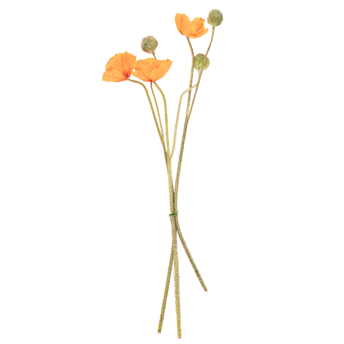 Tato sada umělých vlčích máků se skládá ze tří jemných stonků, jejichž elegantní design přirozeně a nenápadně zapadne do jakéhokoli prostředí. Každý stonek má detailně propracovaný květ vlčího máku a okouzlující poupě. Dlouhé stonky s impozantní výškou 75 cm jsou ideální do vysokých váz nebo jako součást uměleckých aranžmá. Vysoce kvalitní směs polyesteru a plastu zajišťuje realistický vzhled a dojem.