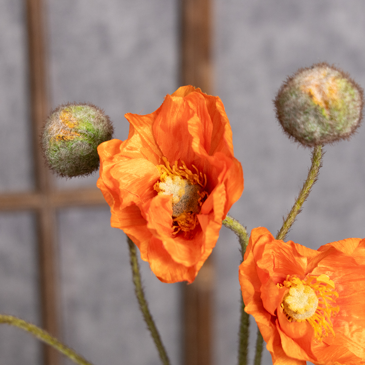 Kdo by nemiloval zářivé květy vlčích máků? Vyvolávají vzpomínky na teplé letní dny, rozlehlá pole a uklidňující pocit přírody. Ale pravé vlčí máky? Vádnou až příliš rychle! A právě zde přichází na řadu naše sada umělých květů vlčích máků. Dokonale vyrobené květiny vypadají tak realisticky, že se na ně musíte podívat dvakrát. Ať už jako dekorace v obývacím pokoji nebo poutavý doplněk na vašem stole v kanceláři, toto aranžmá okamžitě vytvoří veselou atmosféru. Zářivá oranžová barva přináší energii a zároveň zachovává harmonický pocit – skutečný povzbuzovač nálady v každé místnosti. A to nejlepší: žádné vadnutí, žádné zalévání – jen čistý požitek.