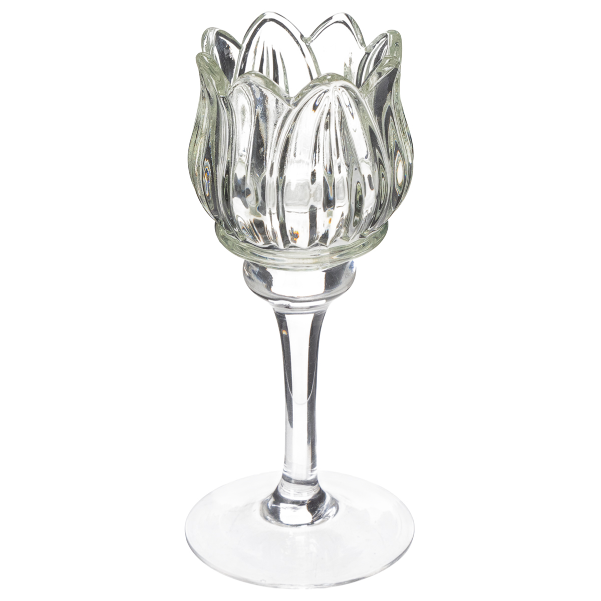 Skleněný svícen na čajové svíčky, dekorativní tvar květiny pro stylovou atmosféru, 17 cm