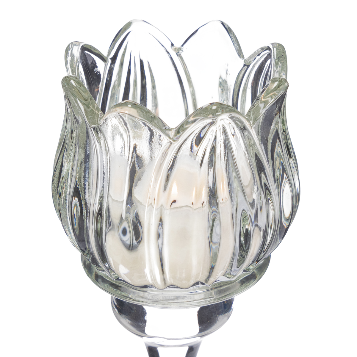 Skleněný držák na čajové svíčky – dekorativní tvar květiny pro stylovou atmosféru