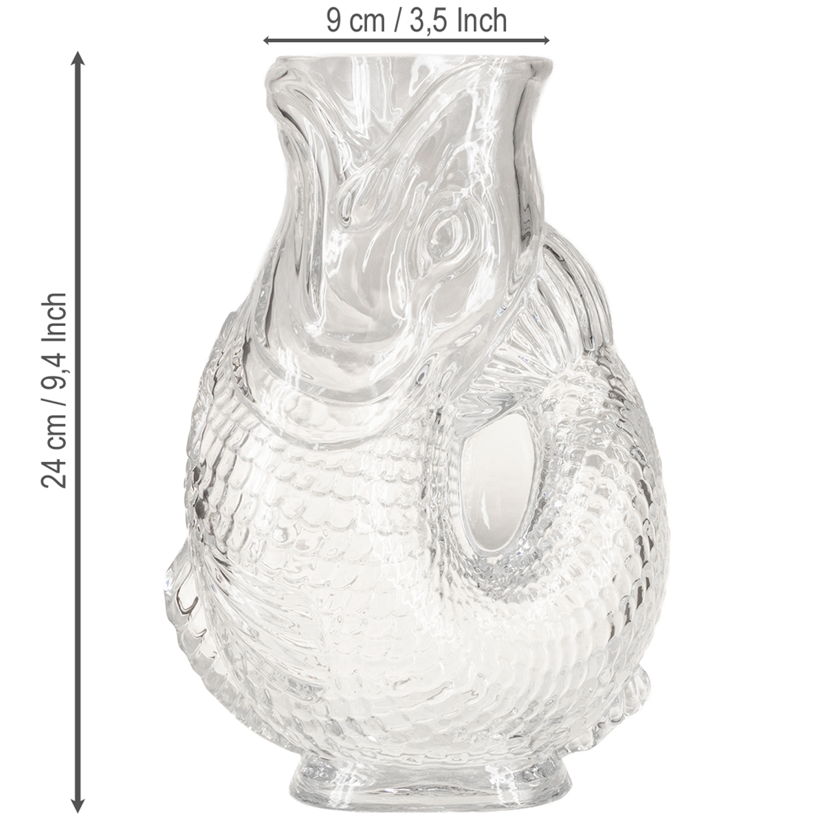 Robustní sklo se setkává s vkusným designem ryby, kde byl každý detail, od šupin až po ocasní ploutev, s láskou zpracován. Průsvitný vzhled evokuje třpyt vody a dodává vašemu dekoru lehký a sofistikovaný nádech. Ať už jako dárek nebo do vašeho domova, tato váza s motivem ryby je skutečným poutačem, který vypráví příběh.
