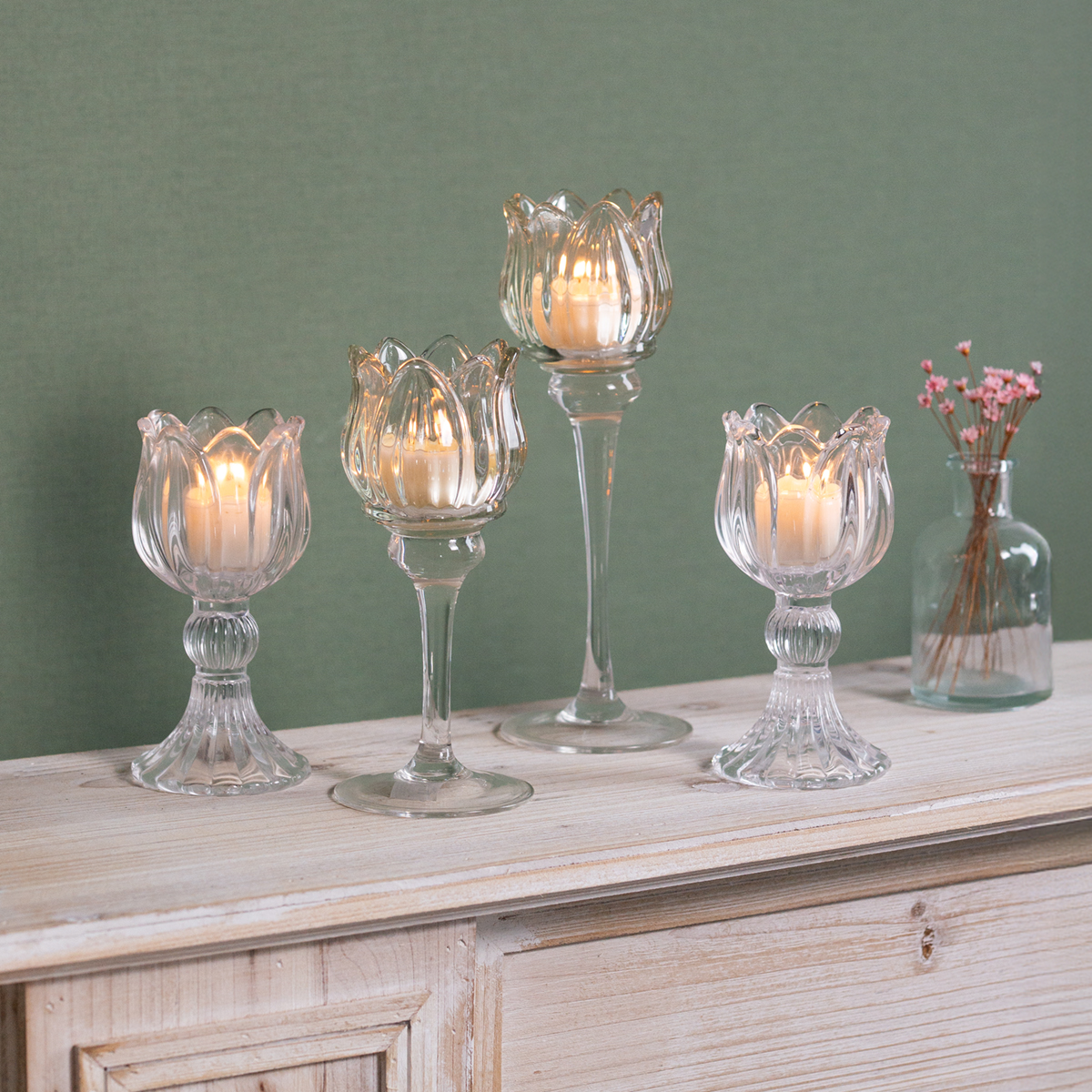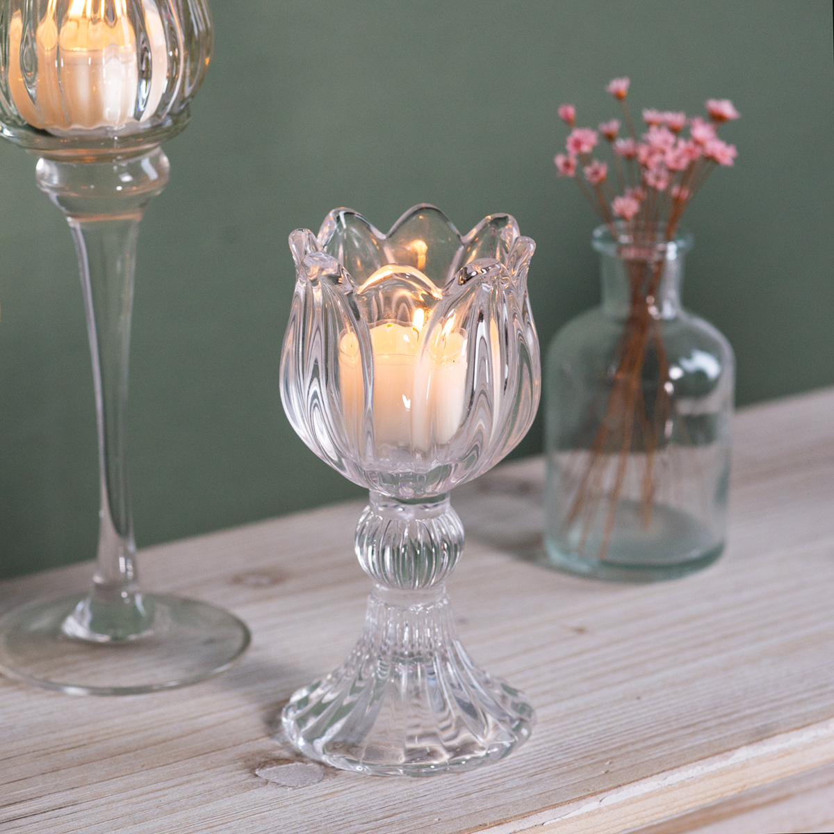 Skleněný svícen na stůl – elegance v květinové podobě
