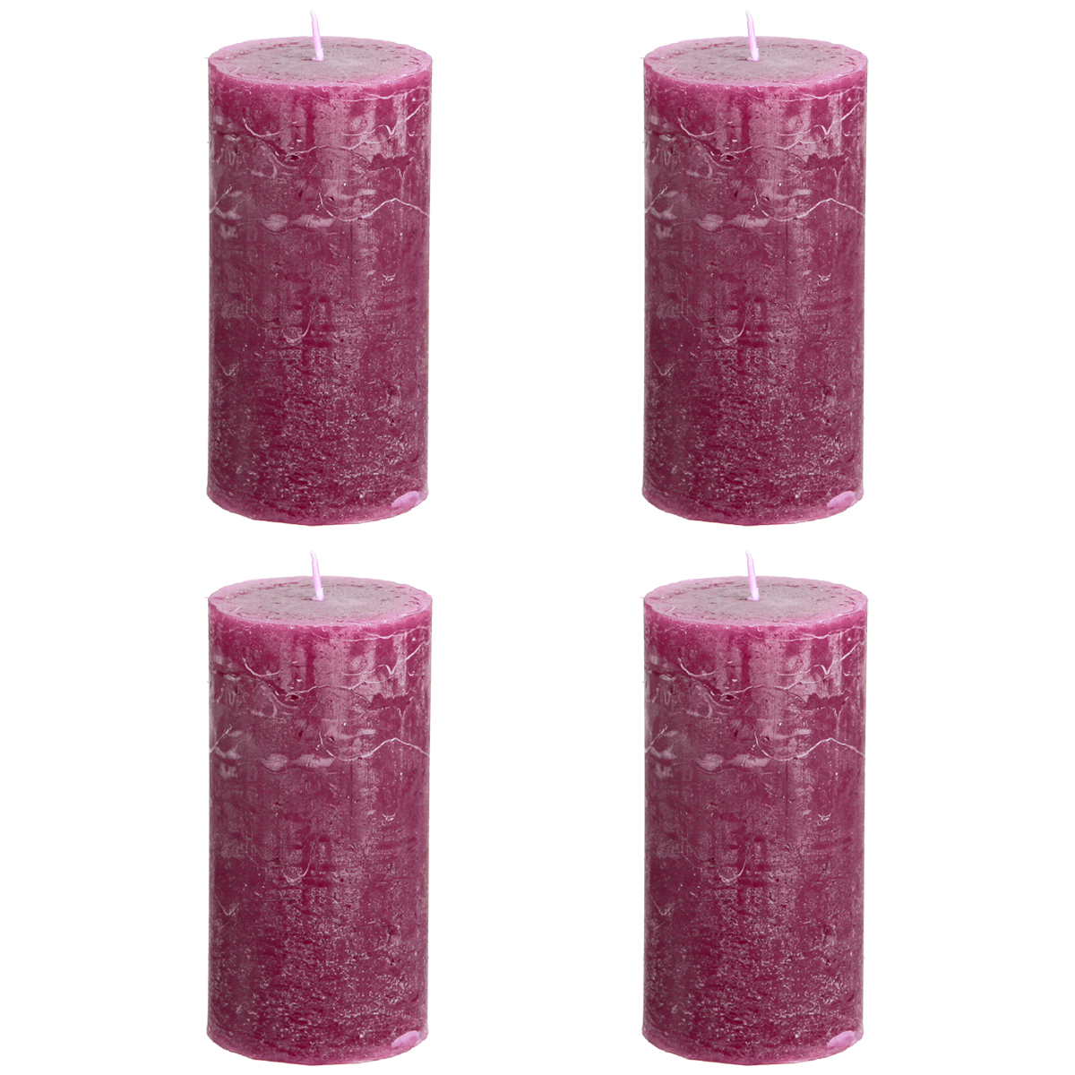 - Čtyři vysoce kvalitní, jednobarevné sloupové svíčky v elegantní fialové (berry)