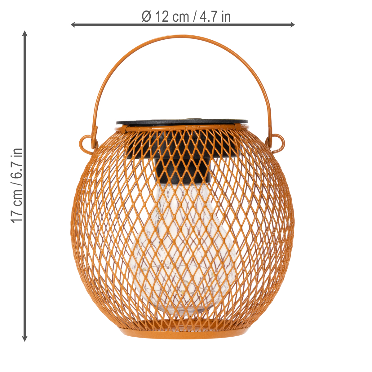 Tato solární lucerna nejenže přináší světlo do vašeho života, ale také dekorativní kouzlo do vaší zahrady. Díky svému jemně oranžovému kovovému pouzdru a elegantnímu mřížkovému vzoru se krásně hodí do moderního i rustikálního stylu interiérového designu. Teplé světlo z LED diod vytváří útulnou atmosféru, zatímco chytrý solární panel využívá ekologickou technologii. S výškou pouhých 12 cm je lampa kompaktní a decentní, přesto představuje výrazný designový prvek. Díky svým voděodolným vlastnostem odolává mírné vlhkosti, větru a slunci po celé léto – ideální pro venkovní použití!