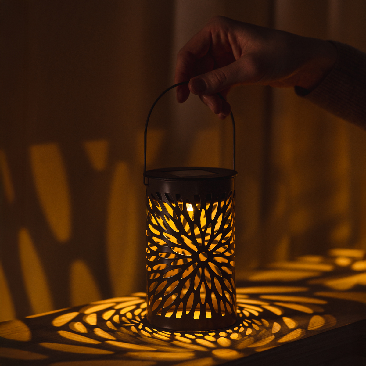Naše solární lucerny kombinují funkčnost s atraktivním designem a vysoce kvalitním zpracováním. Jsou vyrobeny z robustního kovu, odolávají lehkému dešti i letnímu počasí a vydrží vám po mnoho let. Díky své praktické velikosti – výška 22 cm včetně rukojeti a průměr 8 cm – se snadno přepravují a aranžují dle libosti. Teplé bílé LED diody poskytují příjemné, lákavé světlo, které není ani oslnivé, ani rušivé. Ať už lucerny kreativně rozmístíte při večerním grilování, nebo je použijete jako atmosférické osvětlení romantického balkonu, doplní jakýkoli styl. Obzvláště úžasně vypadají v boho nebo vintage stylu. Milovníci přírodních tónů ocení sladěnou barevnou kombinaci. Lucerny můžete ideálně kombinovat s venkovními květináči nebo jinými dekorativními solárními světly a vytvořit tak harmonický celkový vzhled.