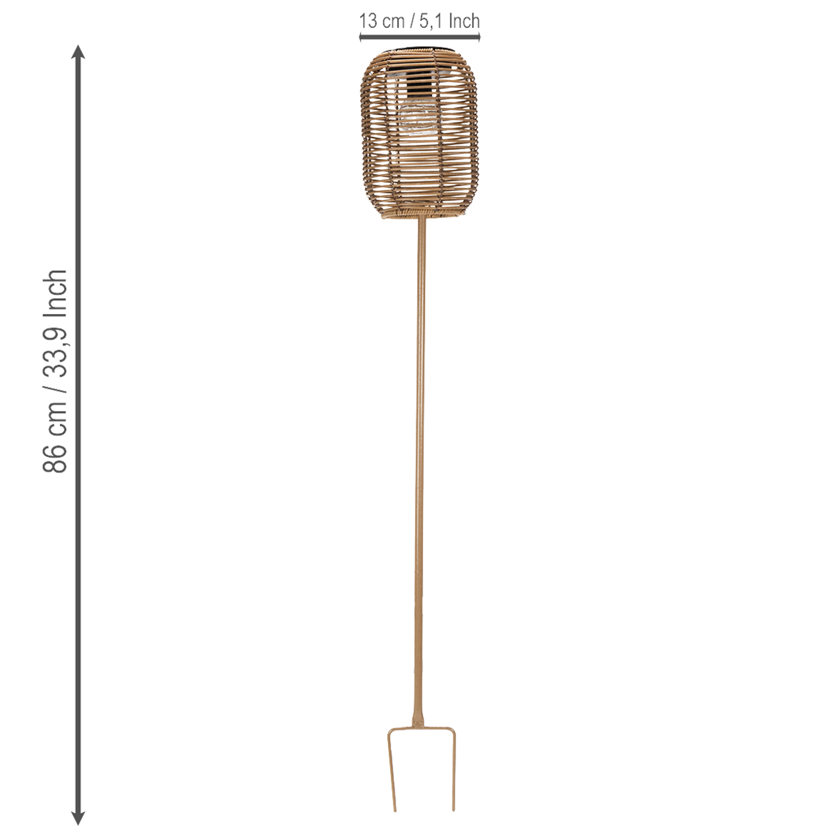 S výškou 86 cm působí stylově, aniž by byl rušivý. Díky průměru 13 cm je štíhlý, takže se bez problémů začlení do jakéhokoli prostředí. Ať už chcete osvětlit útulný koutek u jezírka, označit cestu k zahradnímu domku nebo dodat nádech útulnosti svému balkonu – toto solární světlo slouží k řadě dekorativních účelů. Díky snadné instalaci je ideální pro kutily a je bezdrátové, takže ho můžete kdykoli přemisťovat.