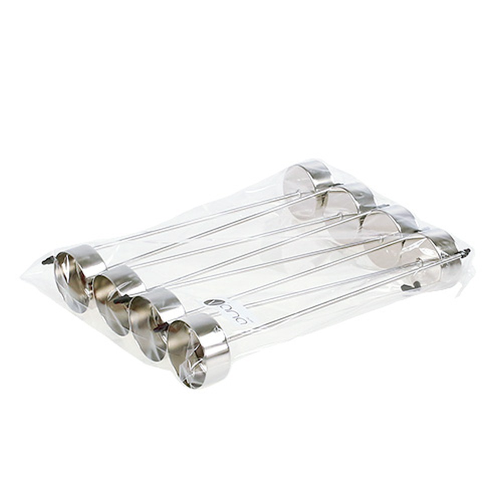 Stojan na čajovou svíčku na zapíchnutí do stříbra se dodává v balení po 8 ks a je vysoký cca 21 centimetrů. Zátka má délku cca 19,5 cm a držák na svíčky má vnější průměr cca 4 cm a vnitřní průměr cca 3,8 cm.