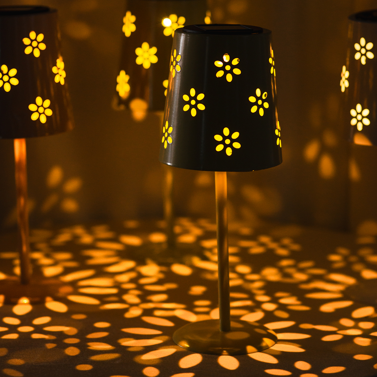 Stolní lampa s květinovým vzorem, solární, pro romantické osvětlení zahrady, 28 cm