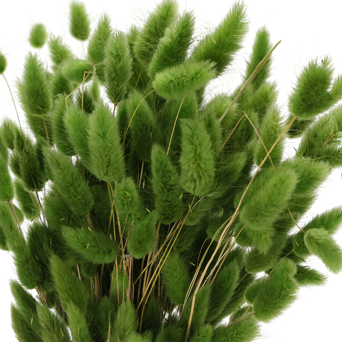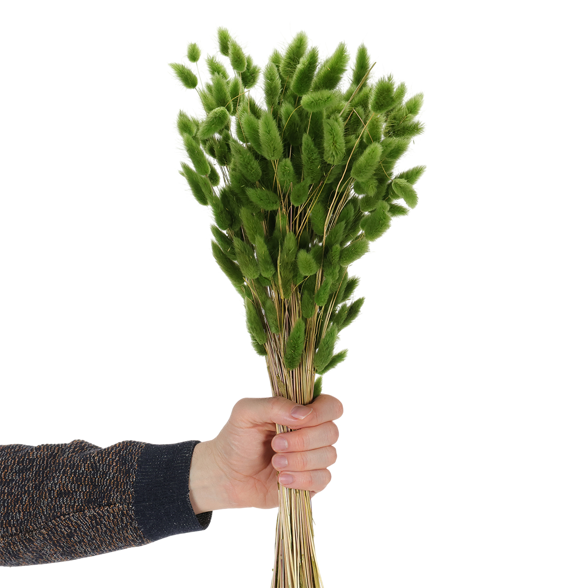 Tato sušená tráva Lagurus v olivově zelené barvě dodá každému aranžmá ze sušených květin v boho stylu nádech živosti. Jasně zelená barva této sušené trávy je jednou z nejtrendovějších barev, které uvidíte v široké škále aranžmá ze sušených květin.