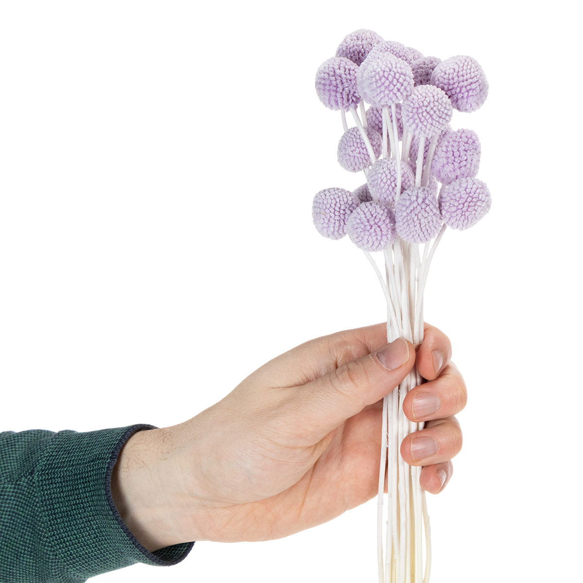 Dodá vašemu domovu nádech elegance a individuality! Tyto světle fialové sušené květiny Craspedia nejsou jen pastvou pro oči, ale také perfektní volbou pro moderní bytové doplňky. Tyto okouzlující květiny ve tvaru paličky, které měří 55 centimetrů na délku a obsahují 20 stonků, upoutají pozornost v každé místnosti. Díky své odolné struktuře a přírodním stonkům jsou tyto dekorativní květiny ideální pro použití v interiéru – ať už jako stylové akcenty ve vázách, jako zvýraznění vaší svatební výzdoby nebo jako jedinečný dárek. Sametové fialové hlávky o průměru 2 až 3 centimetry vyvolávají pocit klidu a harmonie. Objevte, jak snadné může být zdobení sušenými květinami!