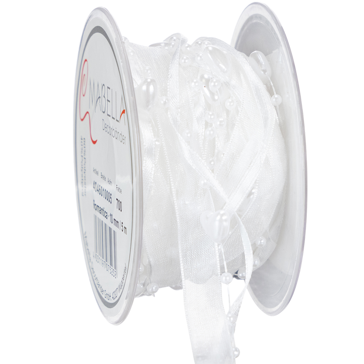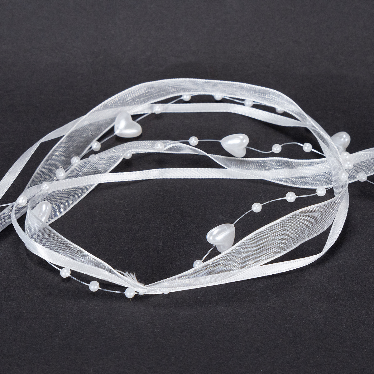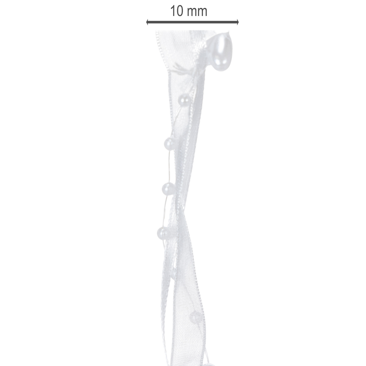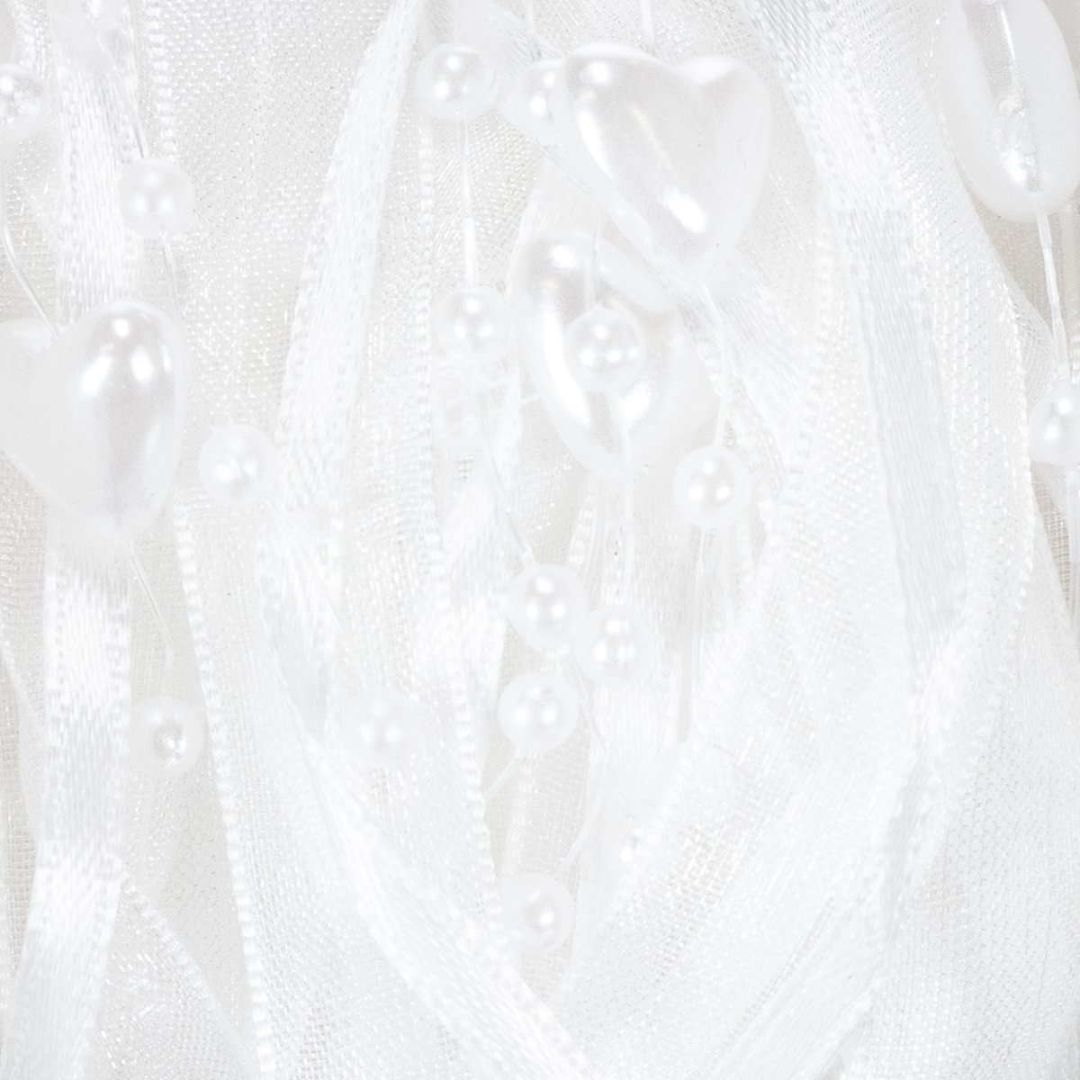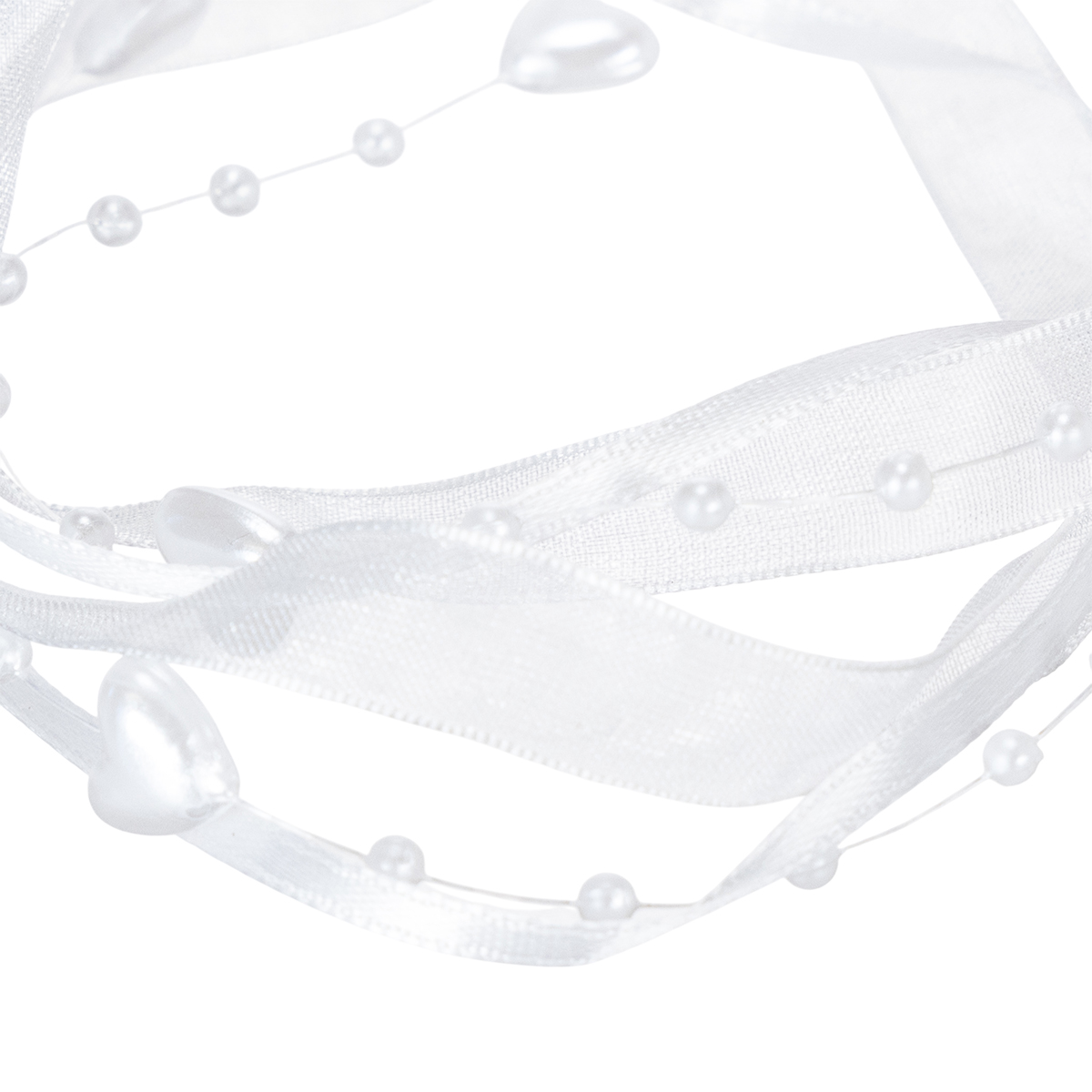 Název produktu: Svatební dekorační organzová stuha bílá 10mm x 5m se srdíčky a perlami