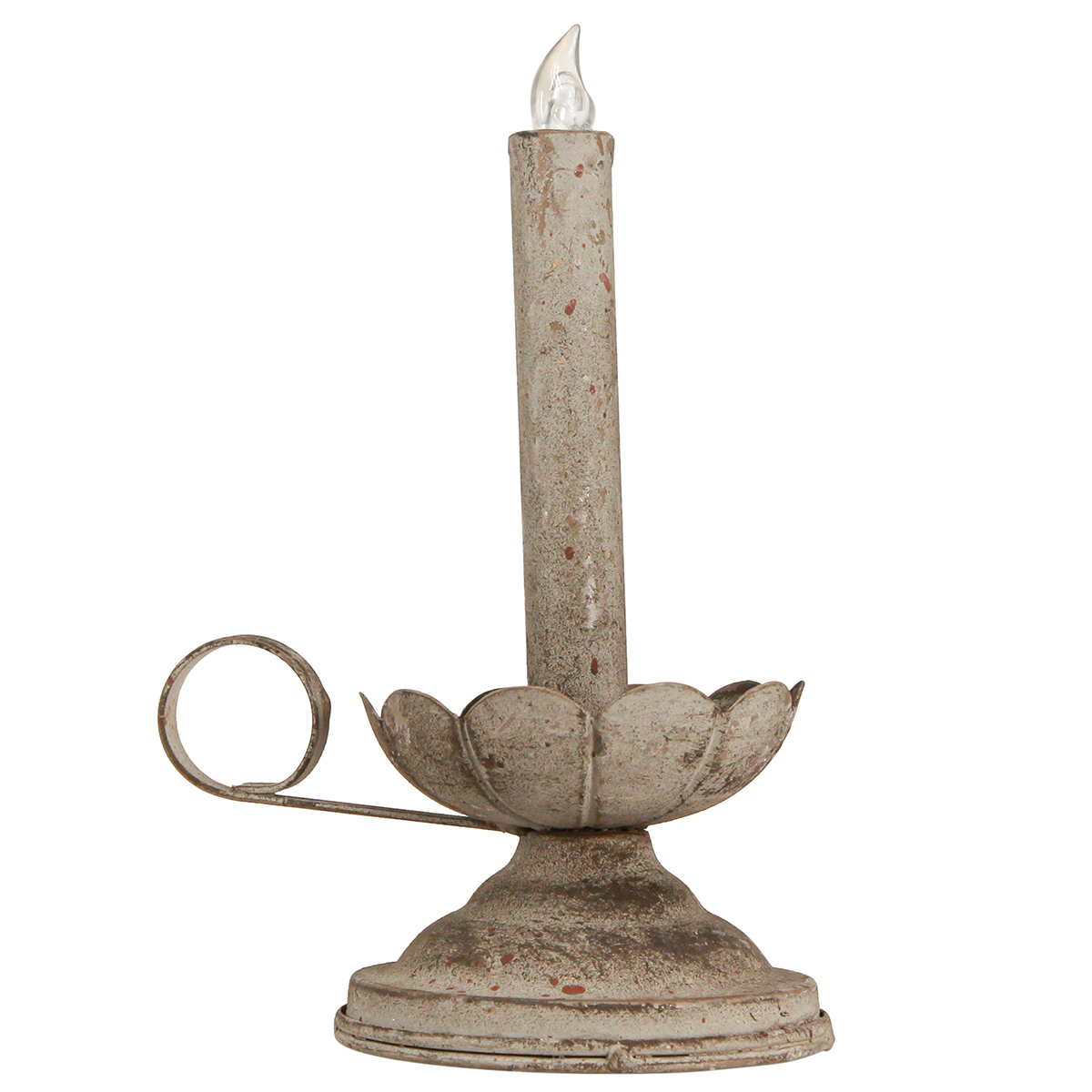 Svícen starožitný s LED svíčkou kovové teplé světlo V22cm
