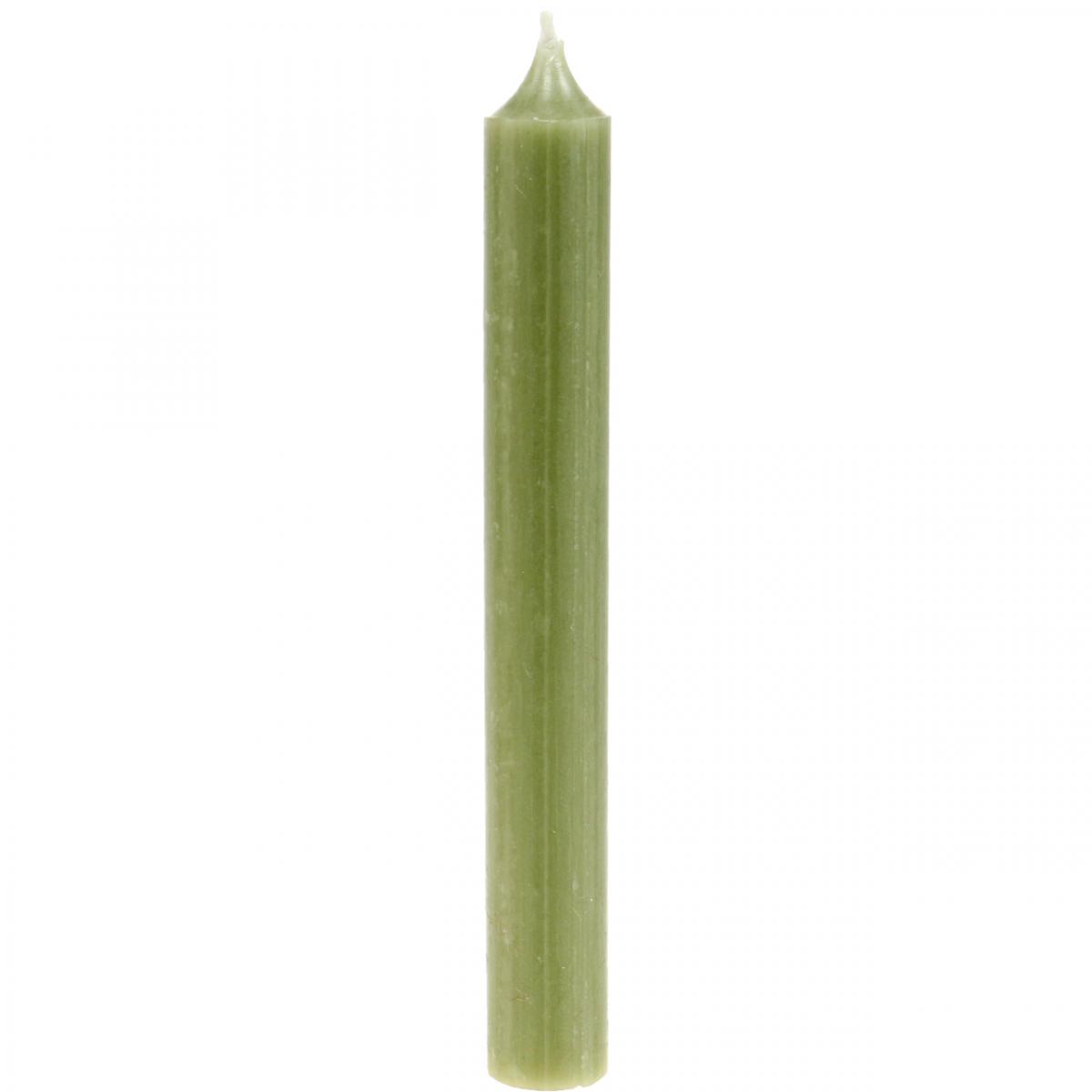 Svíčky tyčkové zelené voskové svíčky barvené 180mm/Ø21mm 6ks