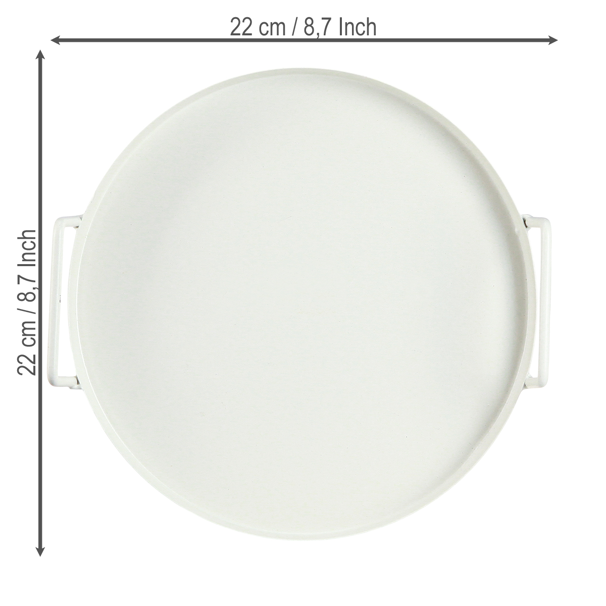 S průměrem 22 cm a decentní výškou 3 cm je tento bílý kulatý podnos ideálním řešením pro četné využití. Servírovací podnos je vyroben z robustního kovu a zaujme nejen svou odolností, ale i všestrannou funkčností. Praktické rukojeti usnadňují bezpečnou přepravu nápojů, občerstvení nebo dokonce snídaňových aranžmá přímo na pohovku – nebo do zahrady na letní párty!