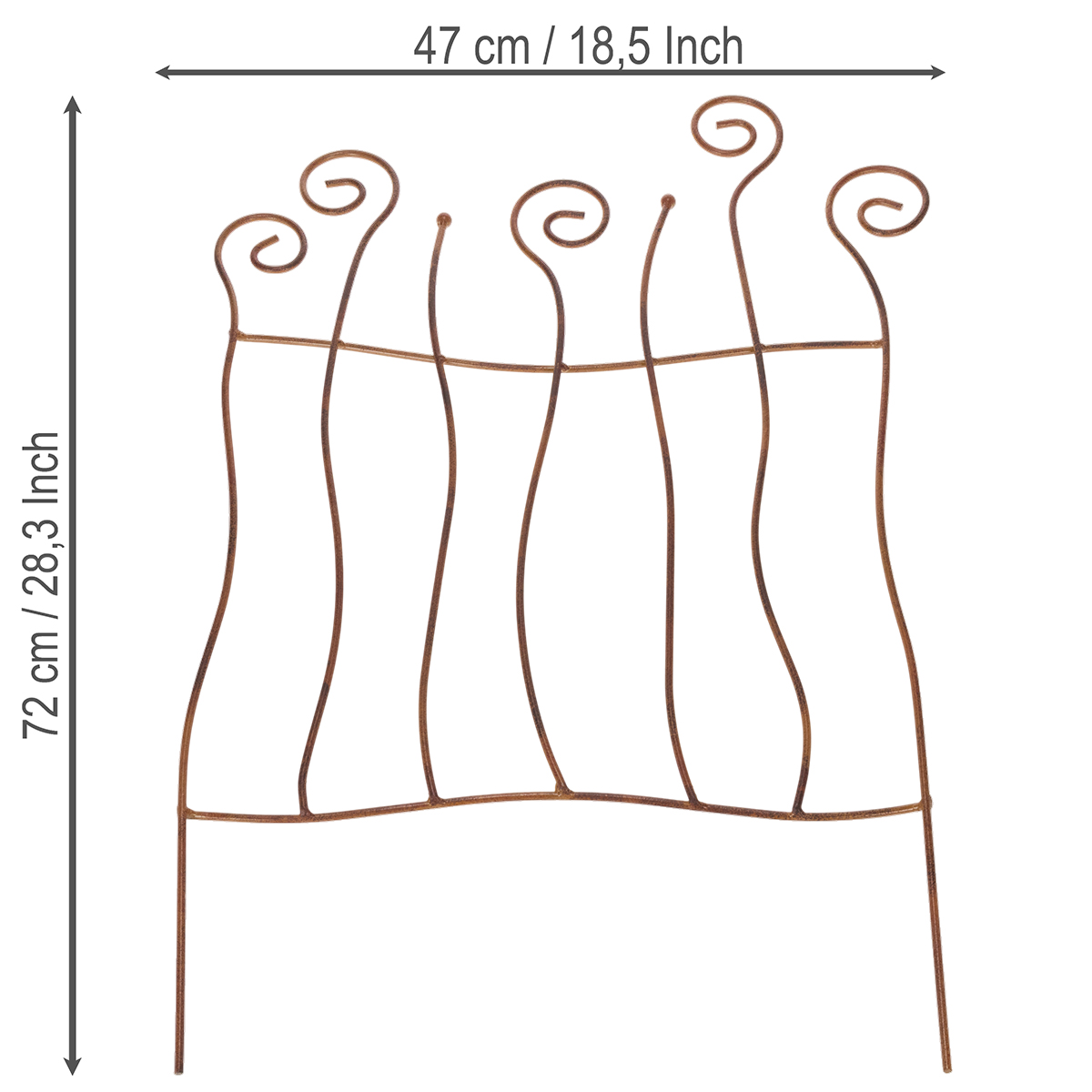 Hravé křivky této zahradní treláže dodají vašemu venkovnímu prostoru nádech nostalgického kouzla v teplém venkovském stylu. Hnědá barva dokonale ladí s přírodními materiály a barvami, což vám umožňuje flexibilně kombinovat tuto odolnou kovovou dekoraci. Ať už ji použijete jako vizuální akcent podél zahradních cest nebo jako ústřední prvek v záhonu, tato kovová treláže kreativně i prakticky vylepší jakýkoli zahradní design.