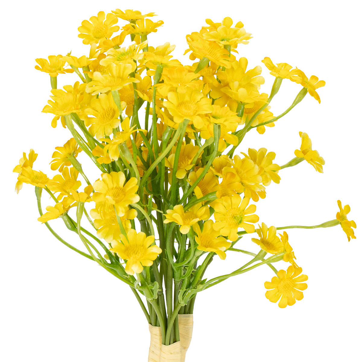 Tento umělý heřmánek v zářivých žlutých tónech přináší tu správnou a hřejivou atmosféru, kterou by si každá místnost mohla přát. Jeho jemné květy vypadají pozoruhodně živě, zatímco robustní stonky vyjadřují působivou autenticitu. S výškou 28 cm se kytice harmonicky hodí do různých nádob – ať už do jednoduchých váz pro moderní vzhled, nebo do rustikálních květináčů pro venkovský styl.