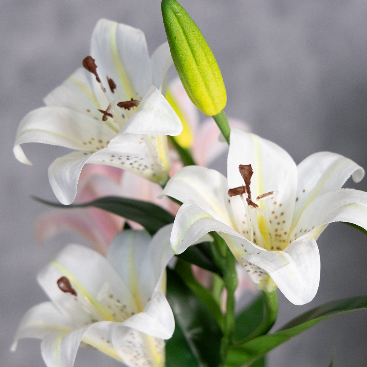 Ať už se jedná o stylovou výzdobu obývacího pokoje, elegantní kanceláře nebo působivé svatební aranžmá: tyto lilie jsou skutečně univerzální. Ti, kteří dávají přednost jednoduchému a elegantnímu vzhledu, je mohou kombinovat s bílými nebo krémovými doplňky; pro vzrušující kontrast se doporučují výrazné barvy, jako je tmavě zelená, vínová nebo zlatá. Popusťte uzdu své kreativitě a udělejte z těchto elegantních lilií ústřední bod vaší dekorace!