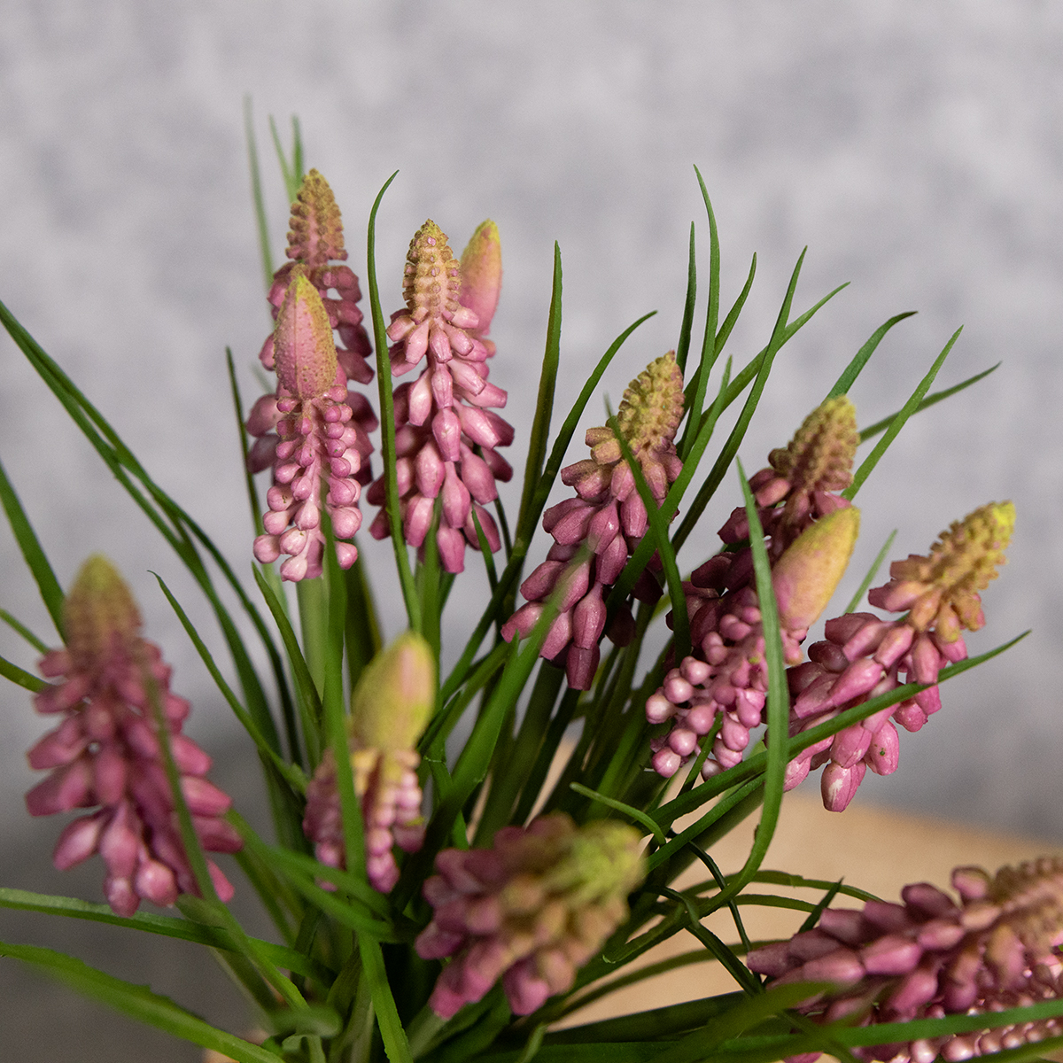 Náš umělý modřenec hroznatý kombinuje krásnou estetiku s praktickou funkčností. S výškou 30 cm a průměrem 3 cm se 15 květinových stonků perfektně hodí do jakéhokoli aranžmá. Jemné růžové květy vyrobené z vysoce kvalitního polyesteru vypadají pozoruhodně realisticky, zatímco zelené plastové stonky zajišťují stabilitu a dlouhou životnost. Tato umělá kytice je ideální na jarní stoly, jako výplň do vázy nebo jako dekorace do okna. A co je nejlepší, nepotřebuje vodu ani světlo a květy si zachovávají svou krásu po mnoho let.