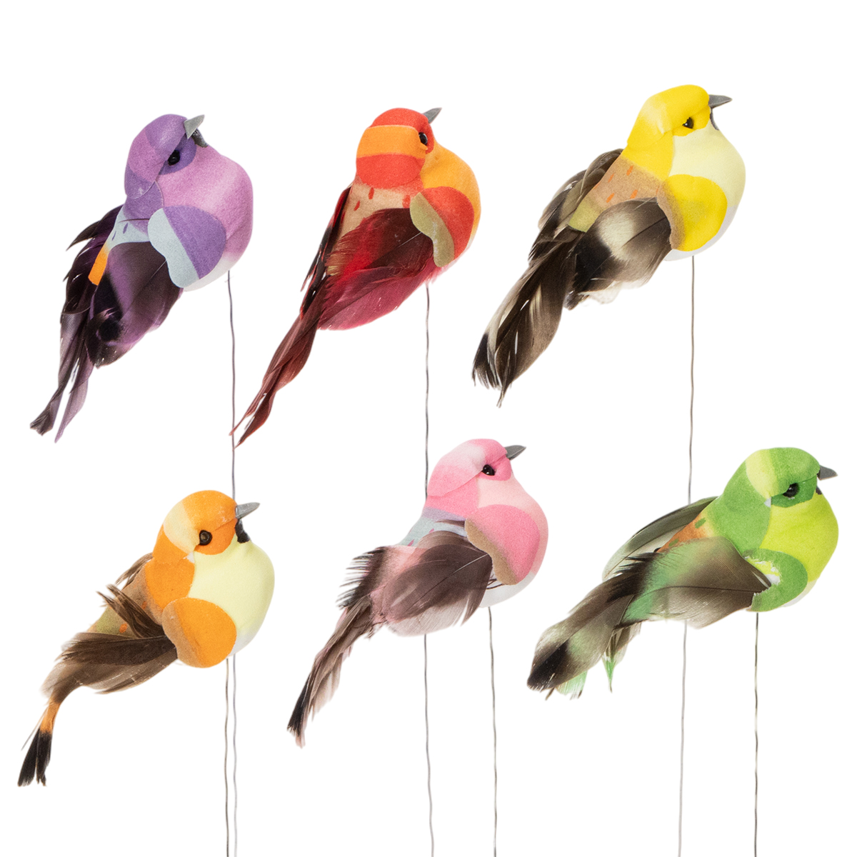 Umělý ptáček s drátkem na tvoření, barevná dekorace pro každé roční období, 8 cm, 12 kusů
