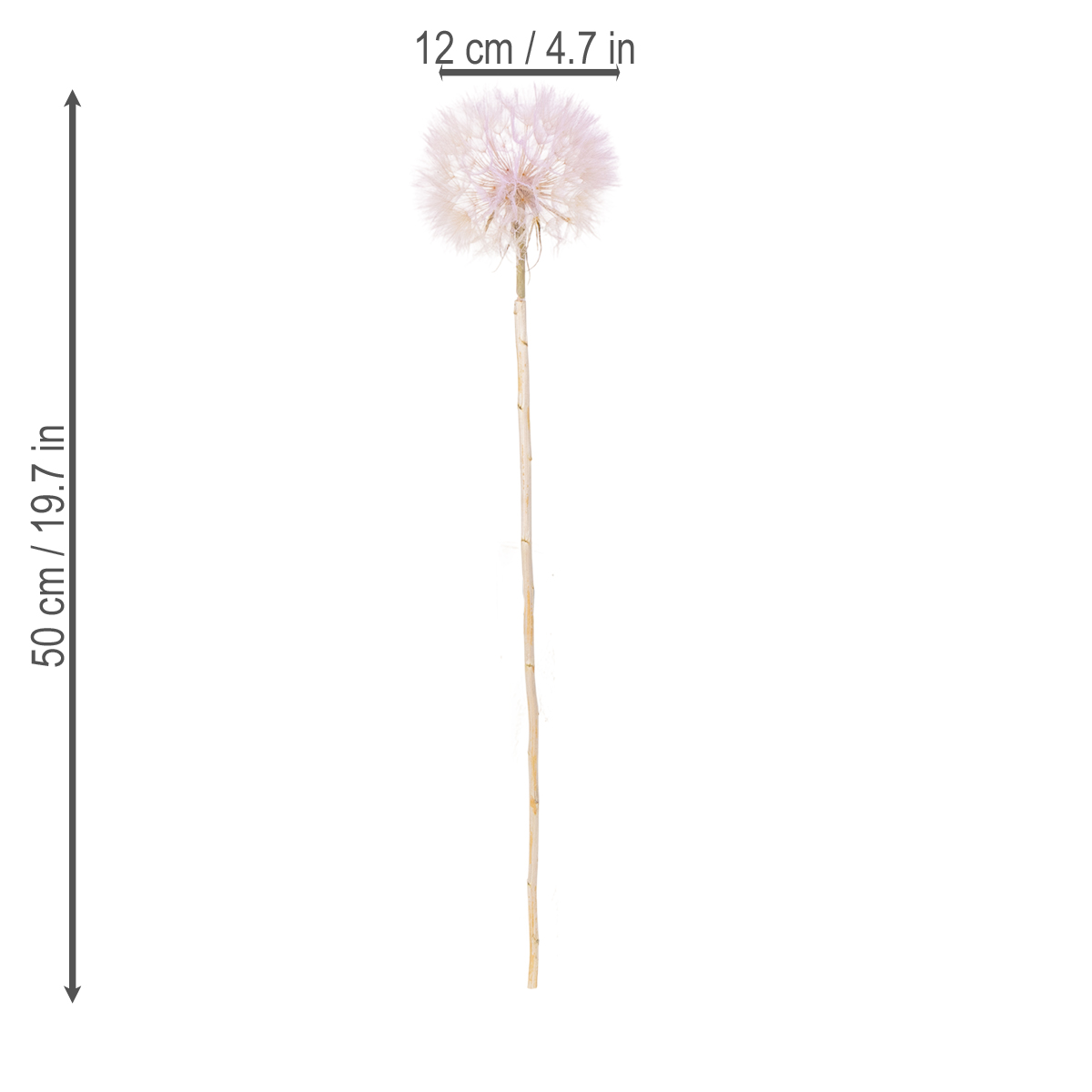 Tato umělá pampeliška zaujme svou vynikající kvalitou a nadčasovým designem. Tyto stylové květiny s výškou 50 cm a průměrem 12 cm jsou ideální do váz nebo jako doplněk moderních aranžmá. Jejich jemný růžový odstín krásně vynikne a dokonale ladí s trendy v interiérovém designu, jako je skandinávský, japonský nebo minimalistický styl. Elegantní efekt vytváří i v kombinaci s přírodními materiály, jako je dřevo nebo kámen.