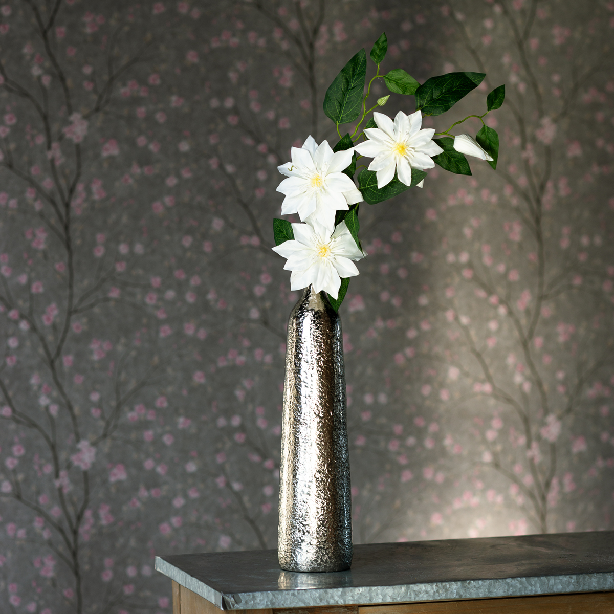 Naše umělá větvička plaménku jedinečným způsobem kombinuje eleganci a funkčnost. Bílé květy jsou vyrobeny z jemného hedvábí, což jim dodává realistickou texturu a jemný lesk. Harmonicky doplněné zelenými plastovými listy vytvářejí nádherně přirozený vzhled, který se hodí téměř do každého stylu interiéru. Ať už je minimalistický, moderní nebo romantický – tato dekorativní větvička se bez problémů začlení.