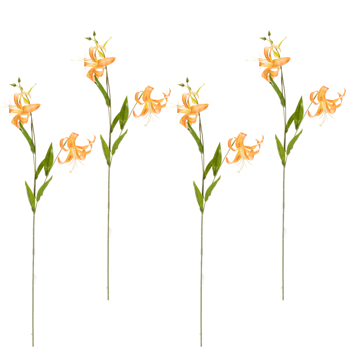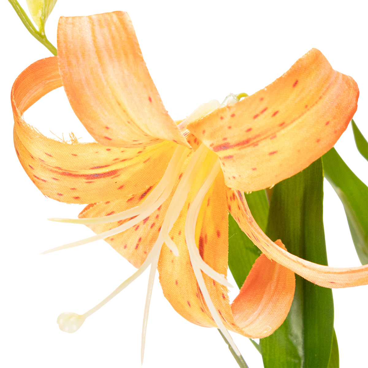 Hledáte elegantní detail pro vaši svatbu nebo akci? Naše vysoce kvalitní umělé lilie nabízejí perfektní kombinaci přírodní krásy a praktické trvanlivosti. Tyto umělé lilie zaujmou svým realistickým vzhledem a jemnými pomerančovými květy – skutečným poutačem! S výškou 77 cm lze tyto umělé květiny bez námahy začlenit do úžasných květinových aranžmá, ať už jako ústřední prvek na stole, ve velké váze nebo jako součást bujné květinové aranžmá. Ať už se jedná o svatbu, narozeniny nebo firemní akci, v mžiku promění jakoukoli místnost. Jsou také fantastickou volbou jako dárek nebo dekorace na stůl. Zajímá vás, jestli vypadají tak skutečně? Rozhodně! Díky své kvalitě a důrazu na detail vypadají téměř jako čerstvě natrhané. Vyzkoušejte je a vneste do svého každodenního života nádech elegance!