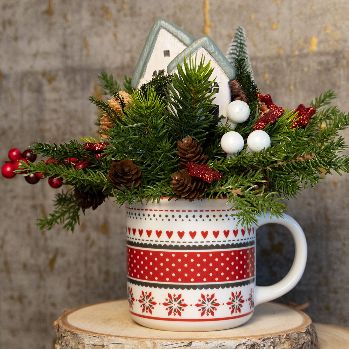 - Dekorace vlastní výroby: Naplňte hrnek jedlovými větvičkami a skořicovými tyčinkami