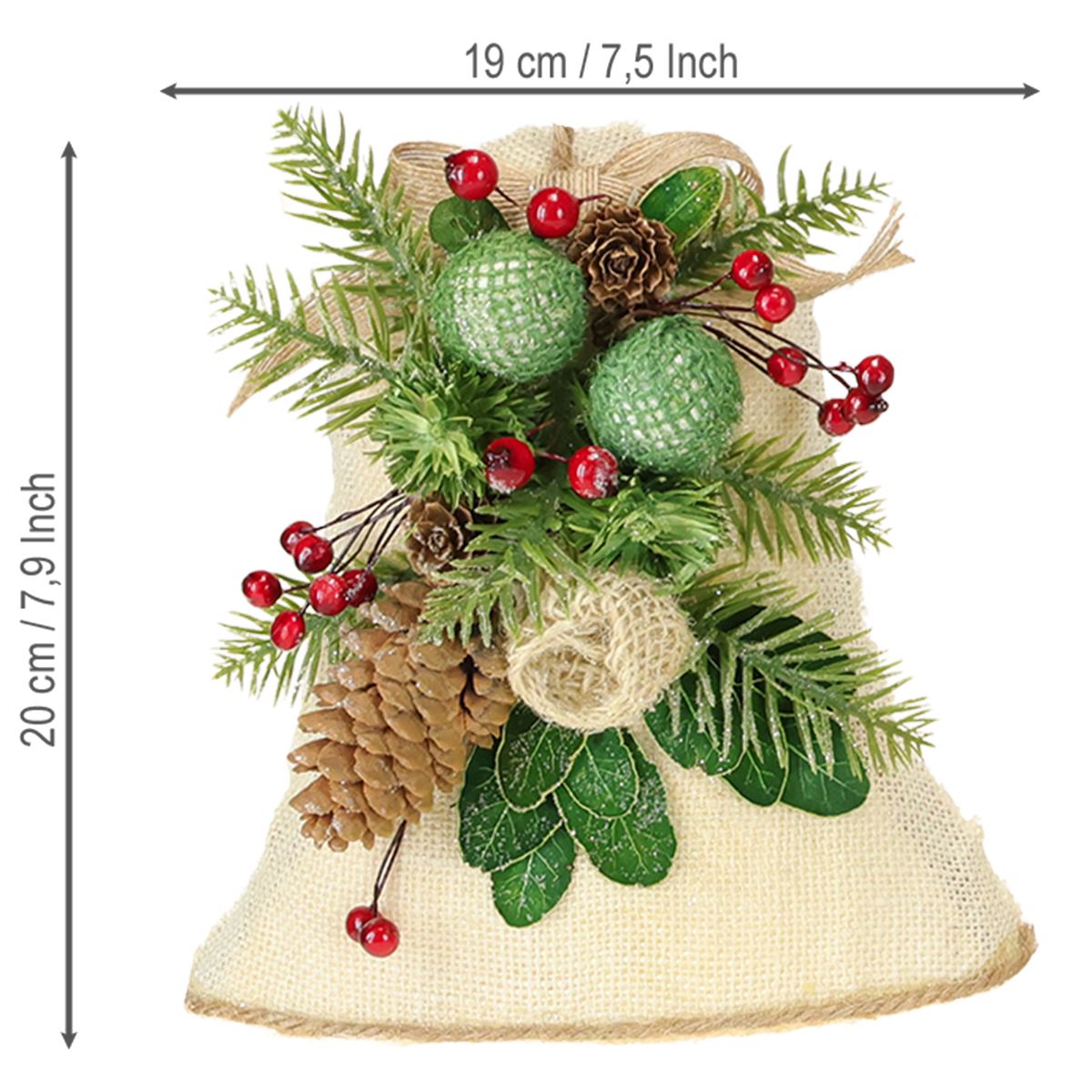 Tyto vánoční nástěnné zvonky se dodávají v párech a jsou ideální pro venkovský styl nebo rustikální prostředí. Polystyren, zabalený v hrubě tkané krémové látce s jutovými akcenty, nejen dodává místnosti lehkost, ale také vytváří úžasně přirozený vzhled. Zvonky jsou všestranné – ať už jako slavnostní uvítací dekorace na dveře obývacího pokoje, nebo jako tradiční nástěnná dekorace, která zaručeně upoutá pozornost. Umělé vánoční větvičky v kombinaci s pravými šiškami vytvářejí úžasně autentický vzhled, zatímco pevný závěs z jutové šňůry zajišťuje bezpečné uchycení. Přemýšleli jste někdy o tom, že byste je spojili a použili jako dekoraci okna?
