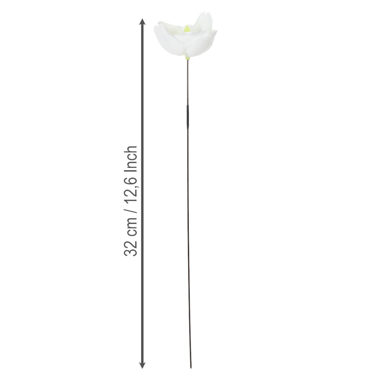 Ať už na smuteční výzdobu, adventní věnec nebo aranžmá na stůl: tato umělá vánoční růže na drátě v bílé barvě ozdobí každý obrobek! Květ růže, též známý jako sněžná lilie, čemeřice černá nebo čemeřice niger, se skládá z pevného plastu a vzhledem k tvaru květu a počtu pylu je velmi podobný originálu. Hlava květiny je na dlouhém kovovém drátu, kterým umělou květinu snadno zapracujete do květinové pěny, slámy a polystyrenu.
